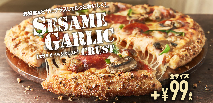 ゴマとニンニクが食欲をそそる、新しいクラストが+99円で登場。