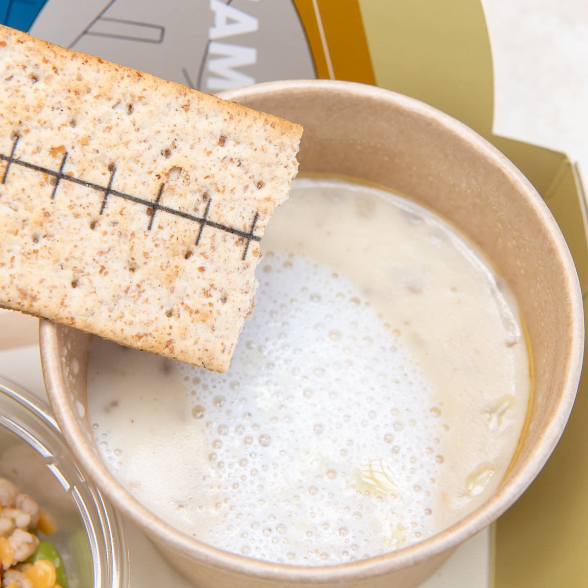 スープに添えられたクラッカーは7:3で割って召し上がれ!