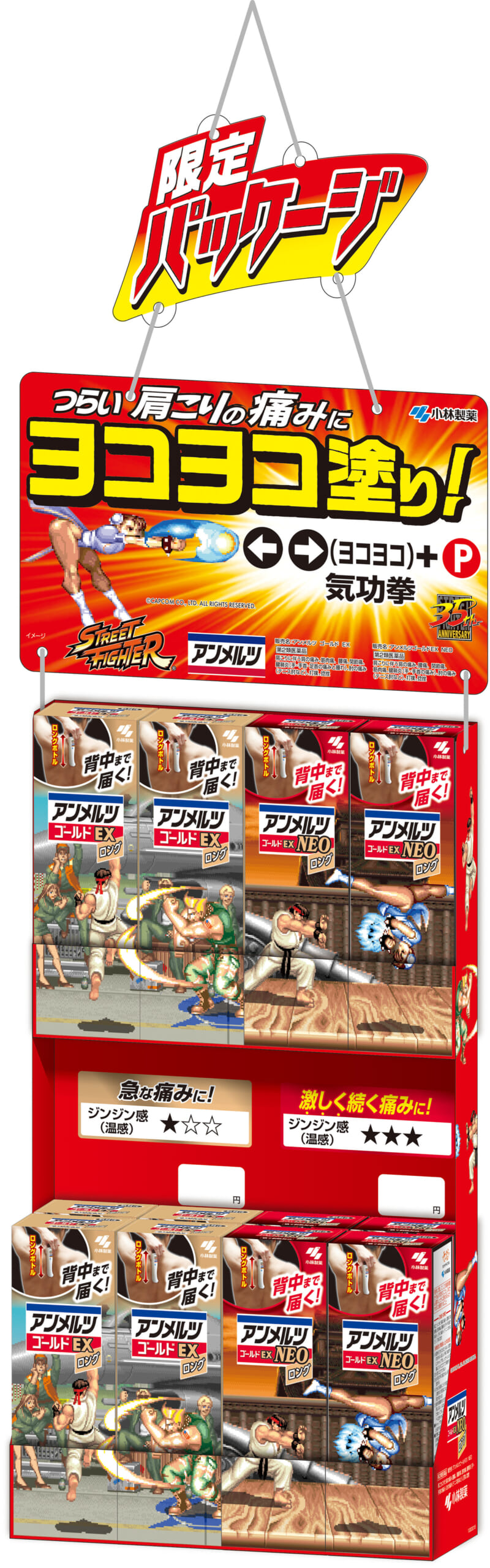 小林製薬の外用消炎鎮痛剤「アンメルツ」ブランドと、カプコンの人気対戦格闘ゲーム「ストリートファイターII」がコラボレーション!