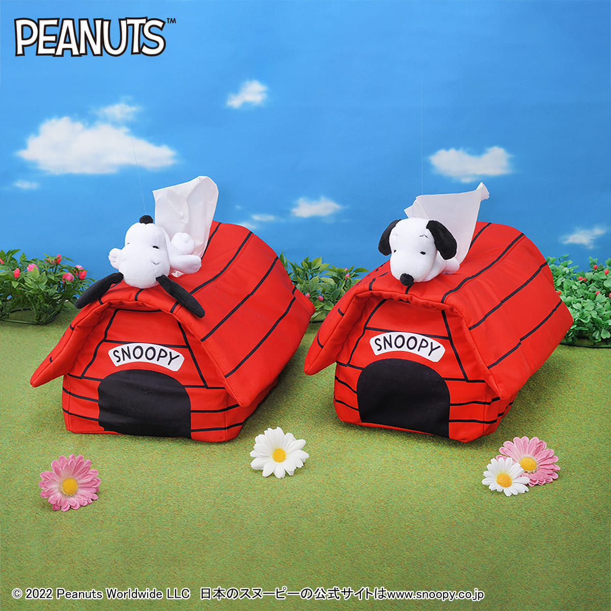「スヌーピー」のおうちをかたどったティッシュボックスカバー。