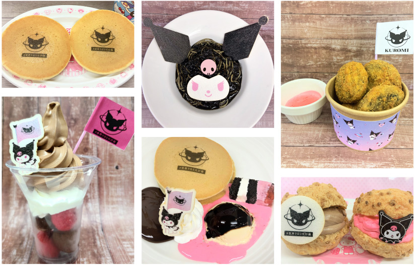 「#クロミ化計画」のオリジナルメニューとして、ホットケーキやパスタなど、クロミカラーのスイーツやフードが登場。