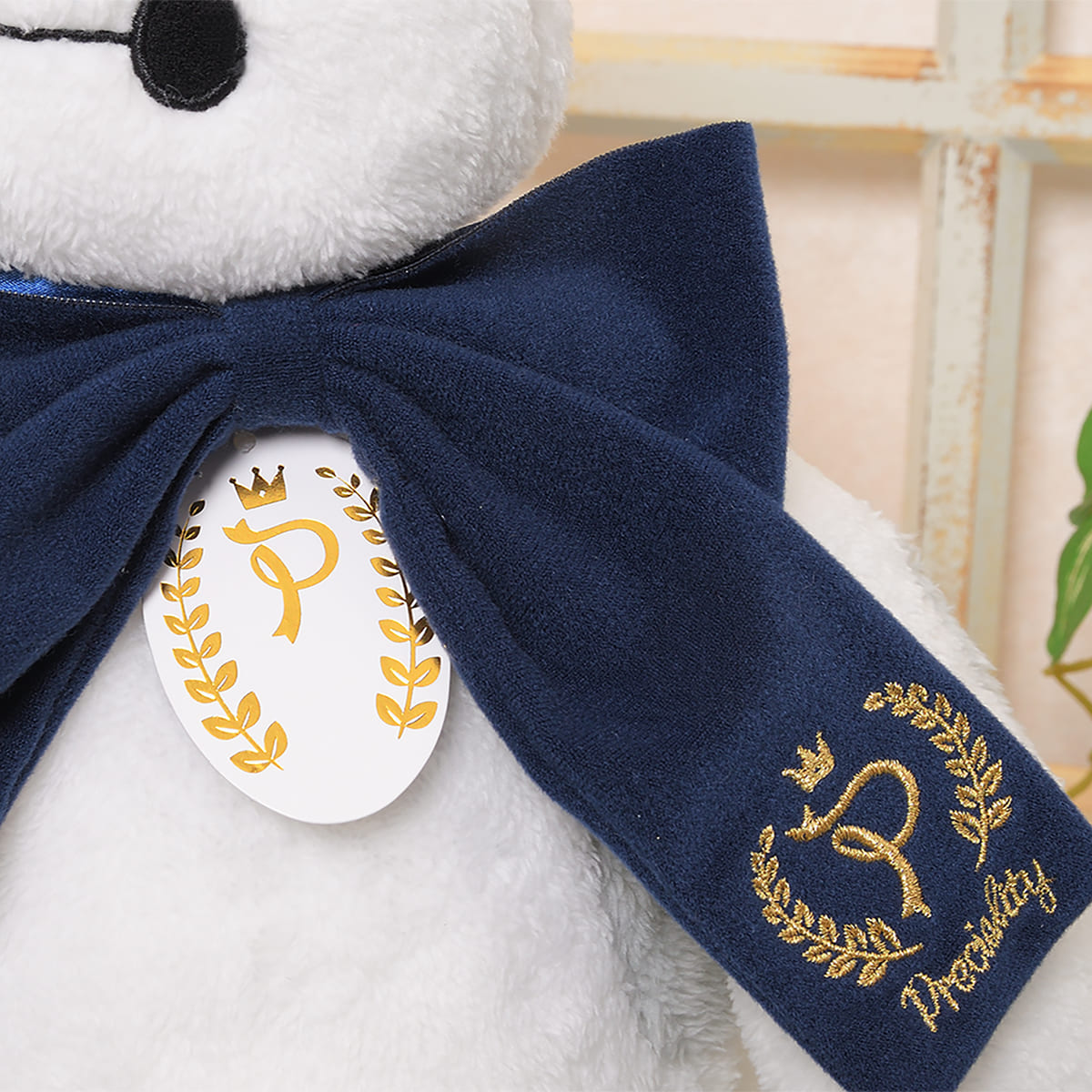 1番の特徴は首元に付いた大きなブルーのリボン。