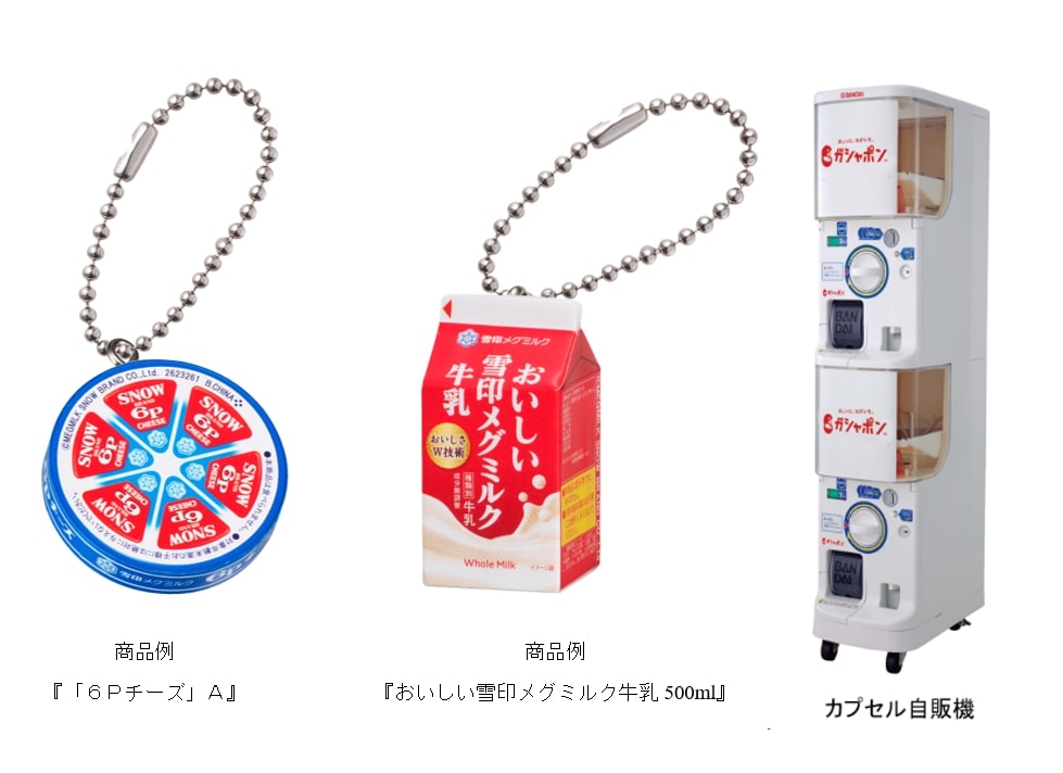 バンダイより発売されているカプセルトイ「ガシャポン」に、雪印メグミルクの牛乳やチーズなどの乳製品を再現したミニチュアフィギュアが登場!