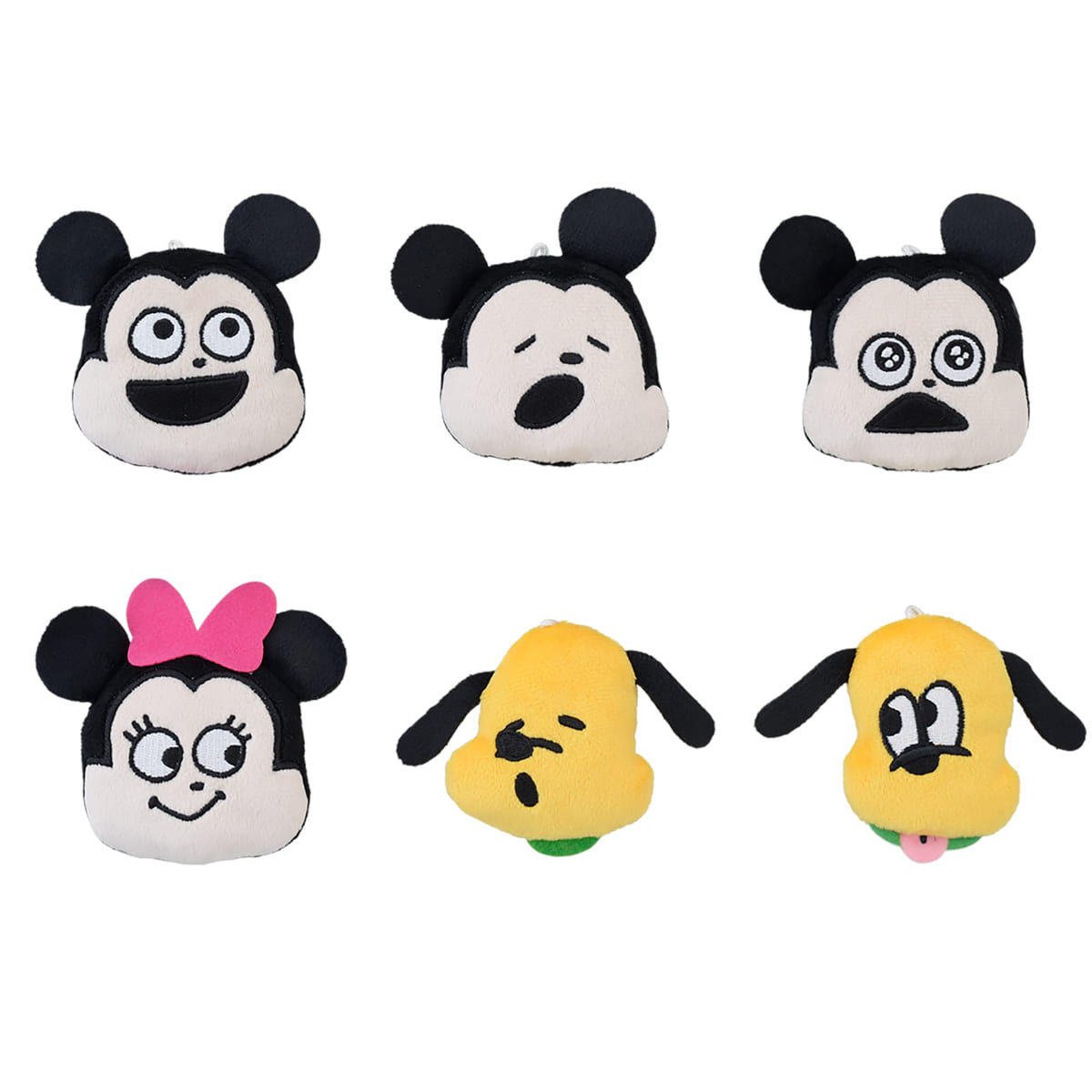 ”うるうる目”や”目閉じ”など表情違いの「ミッキーマウス」や「プルート」に「ミニーマウス」を加えた6種がラインナップ。
