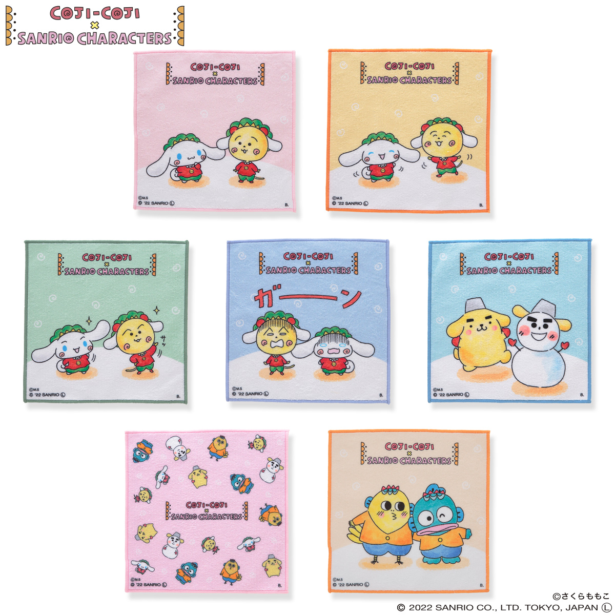 「コジコジ」や「次郎」「シナモロール」「ハンギョドン」が描かれた柄と、総柄の2種類が登場です!