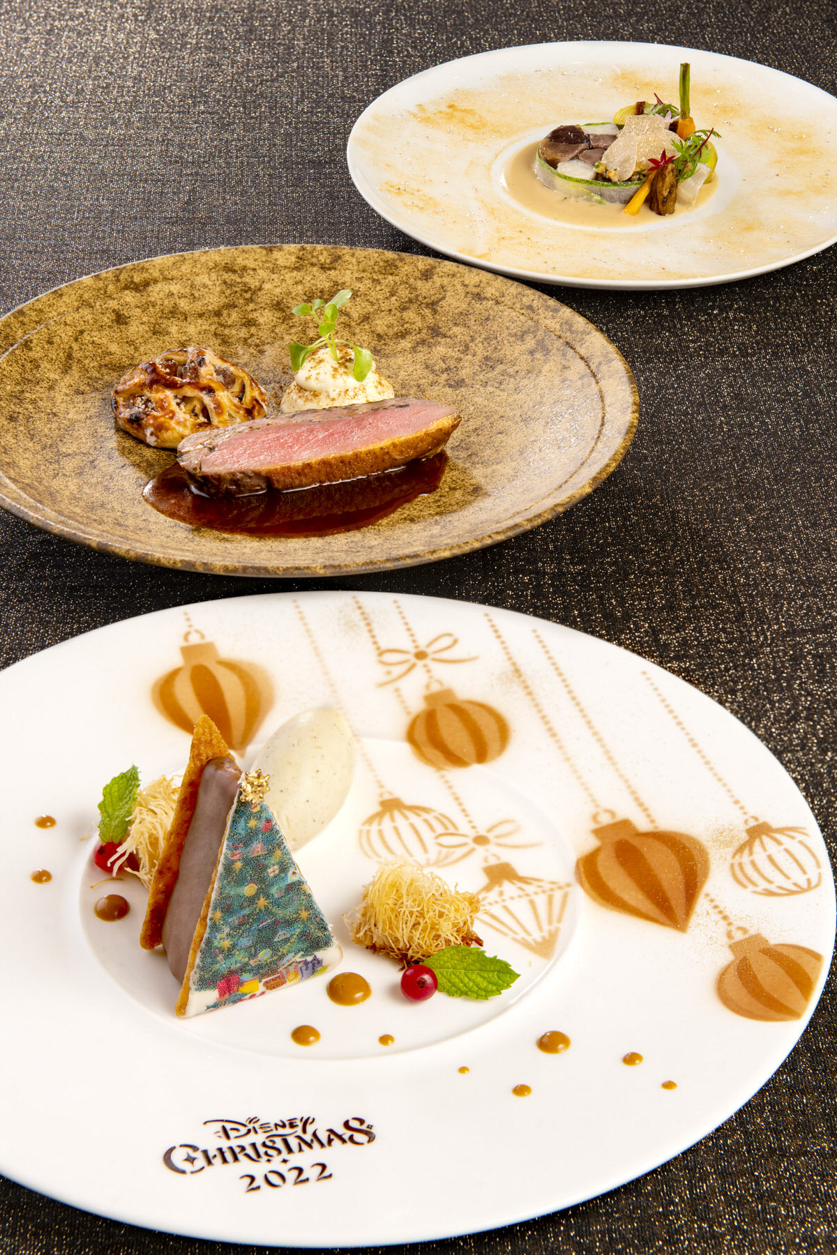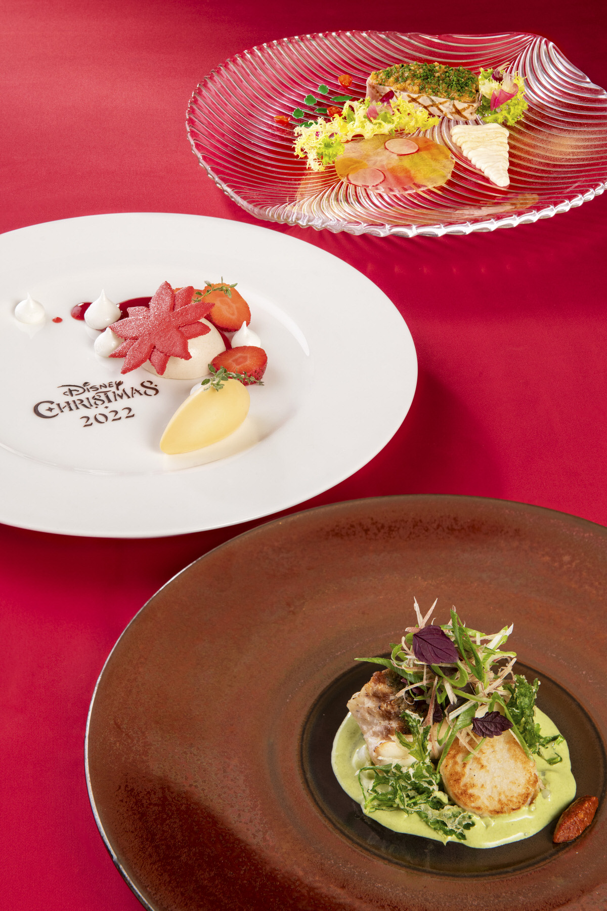 色どり鮮やかなコースメニューが提供される”ディズニー・クリスマス 2022”期間限定のスペシャルメニュー。