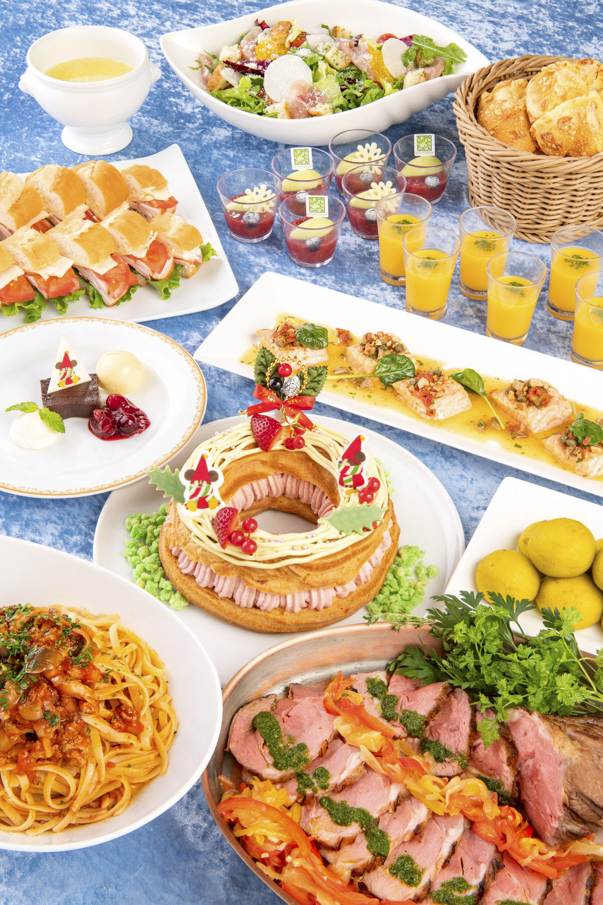 クリスマスらしいごちそうメニューやかわいいデザートが種類豊富に提供されるビュッフェ。