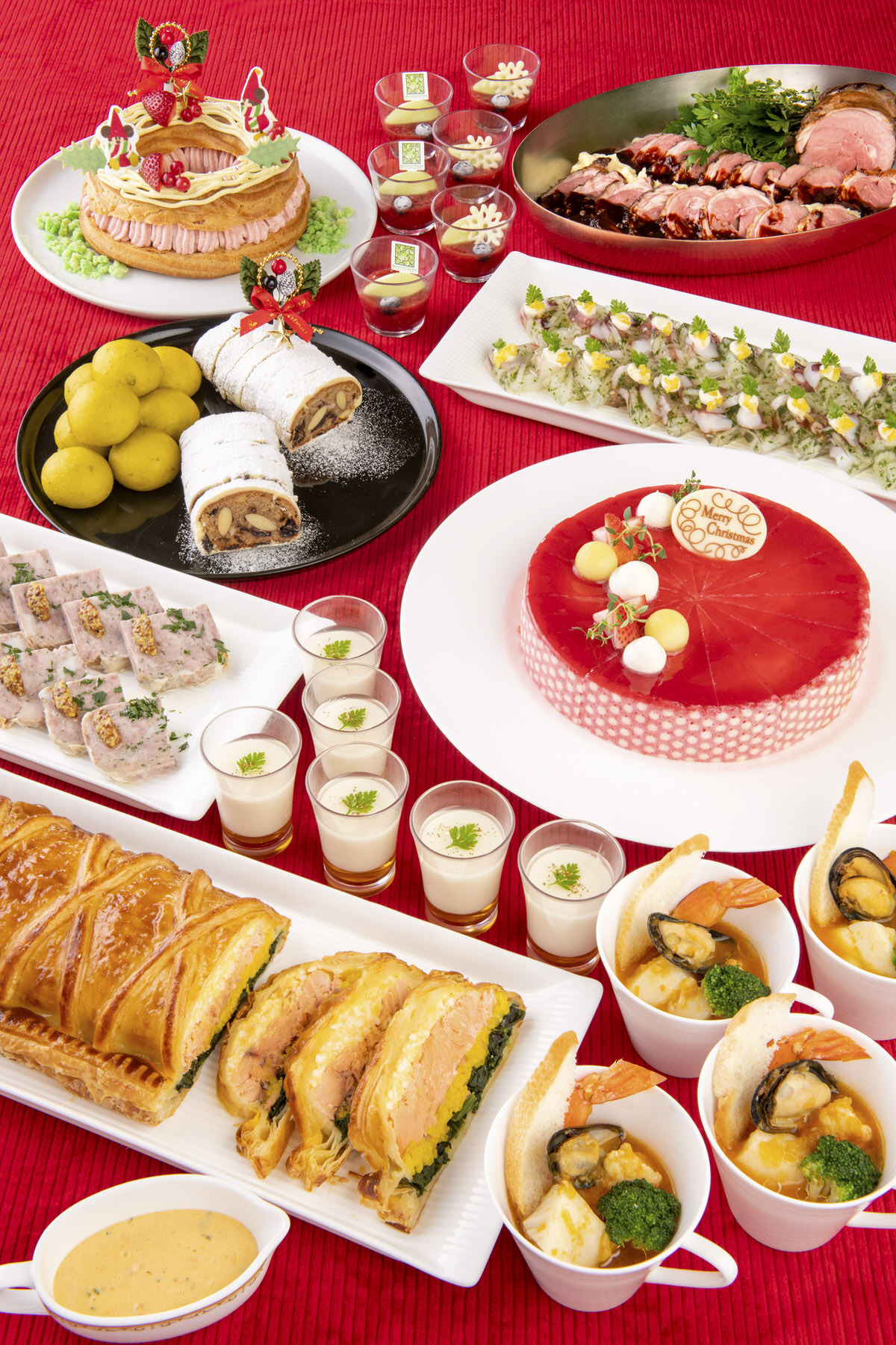 クリスマスのごちそうにいただくような、豪華なメニューがビュッフェ台を彩ります。