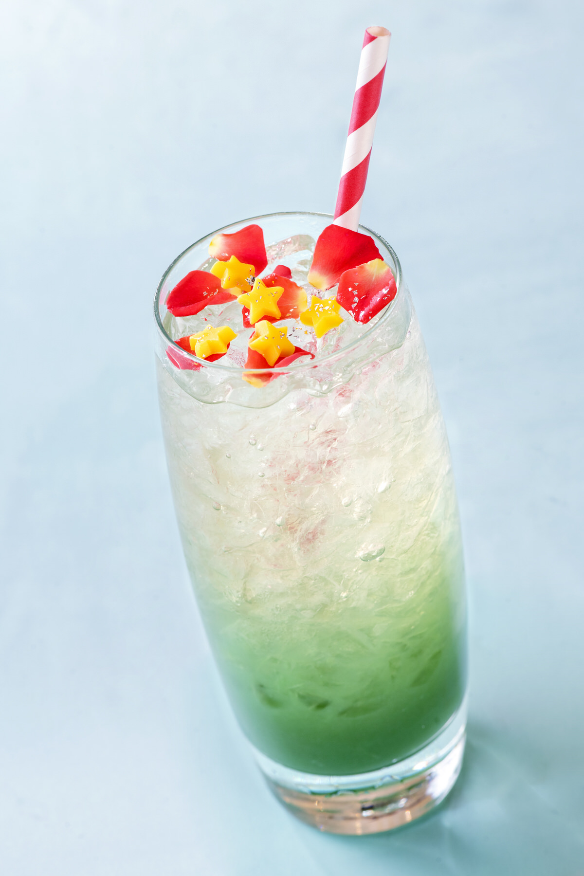 飾り付けがされたクリスマスツリーをイメージした色合いのドリンクになっています。