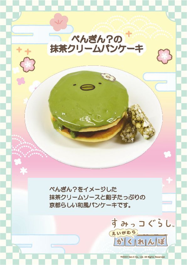 抹茶クリームソースで「ぺんぎん?」を表現した、かわいい和風パンケーキ。