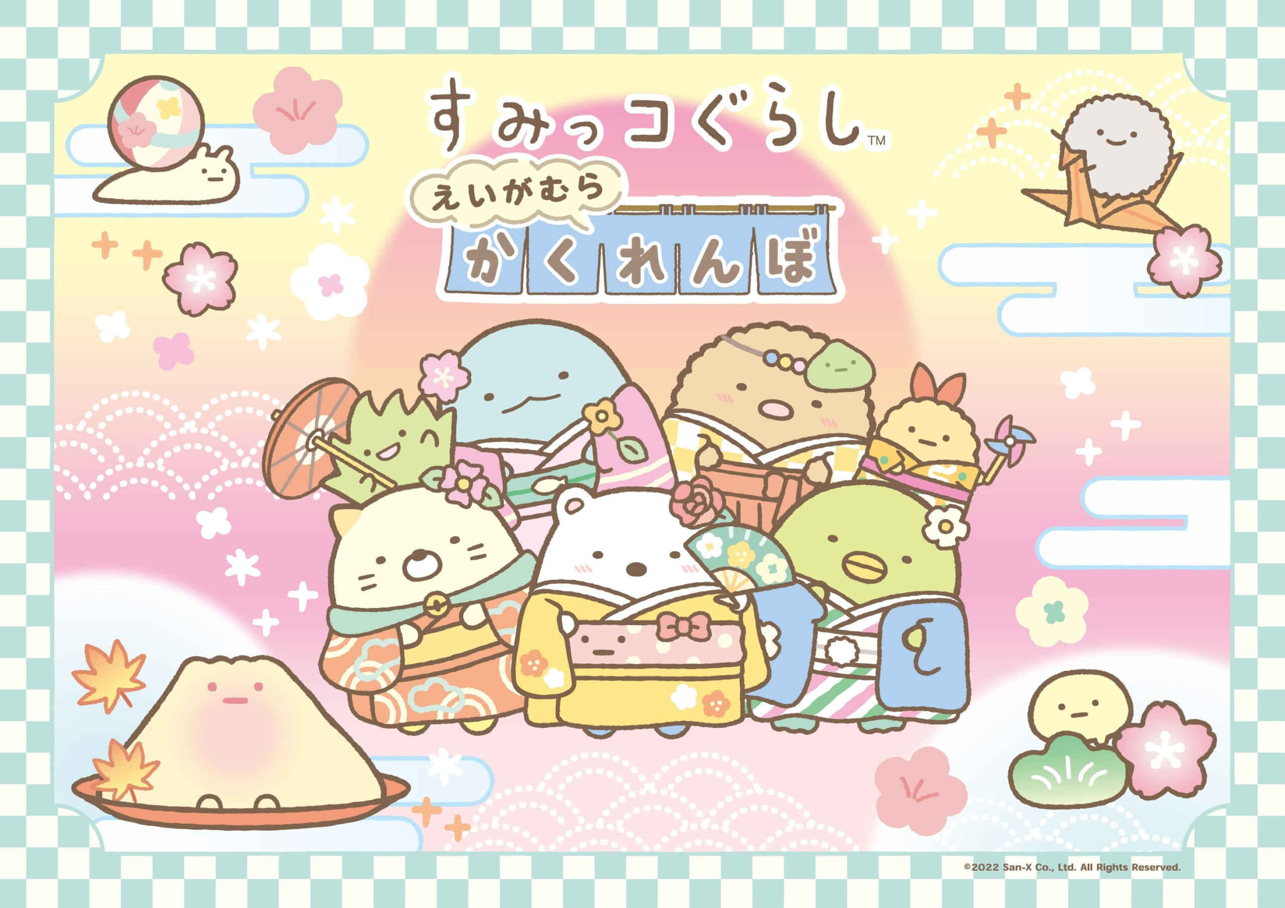 着物姿の「すみっコ」たちと「やま」がとってもキュートです。
