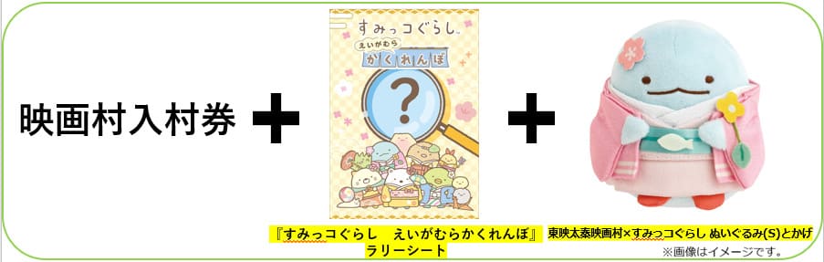 ※ 「『すみっコぐらし えいがむらかくれんぼ』ラリーシート」と「東映太秦映画村×すみっコぐらしぬいぐるみ(S)とかげ」は、イベント期間中、映画村内すみっコぐらし特設ショップ内でも販売します