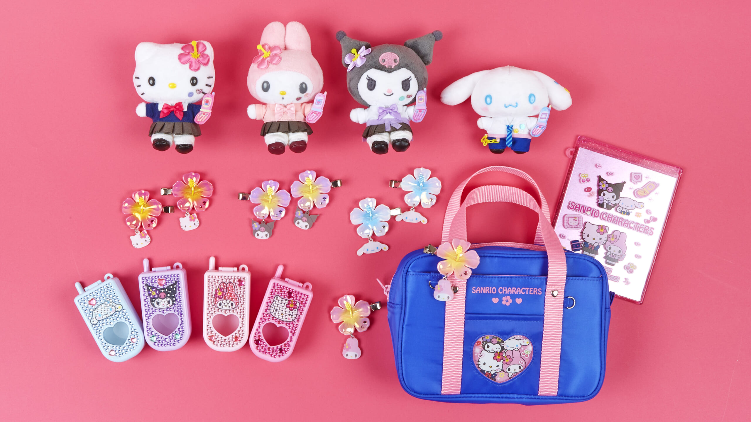 「ハローキティ」「マイメロディ」「クロミ」「シナモロール」が平成の高校生たちのファッションを着用したマスコットホルダーや、ギャル御用達アイテムをモチーフにしたグッズがラインナップされます!