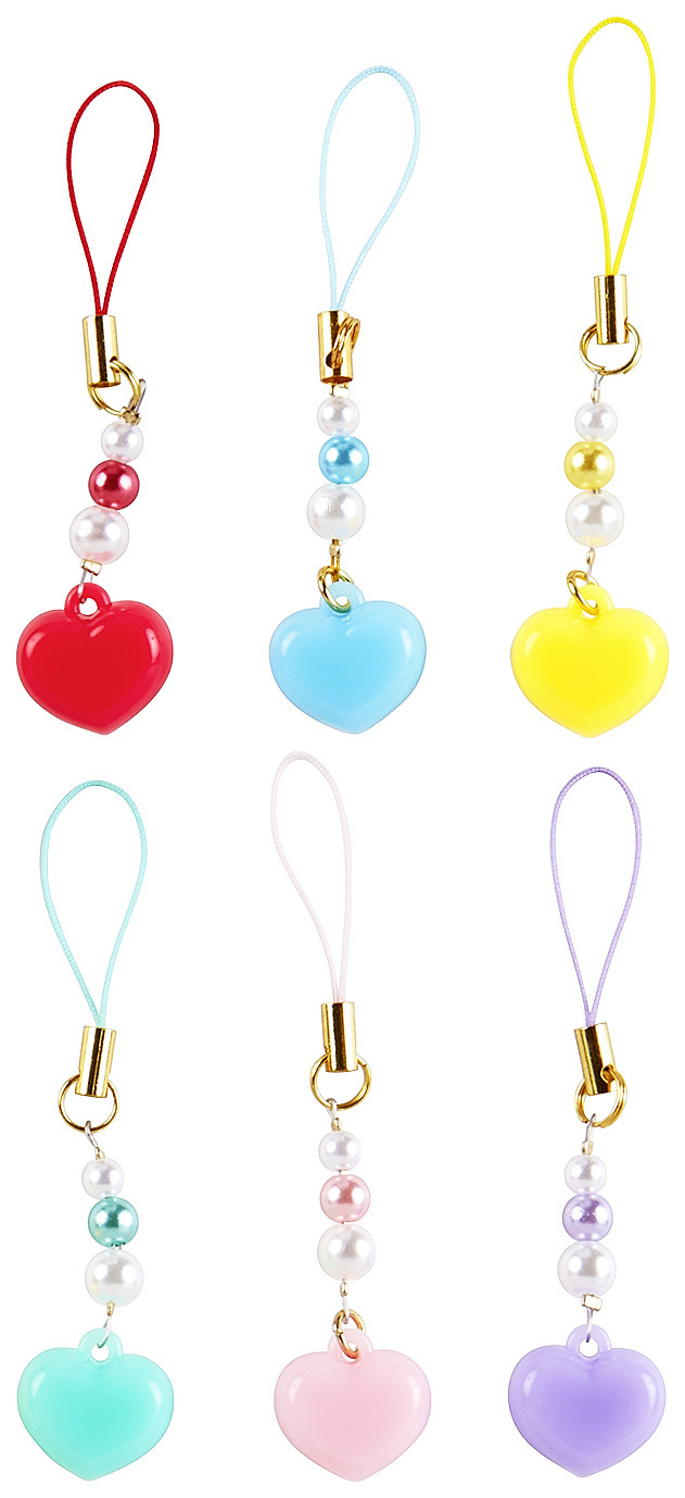 ストラップは3連のパールビーズとハートがかわいいデザイン。