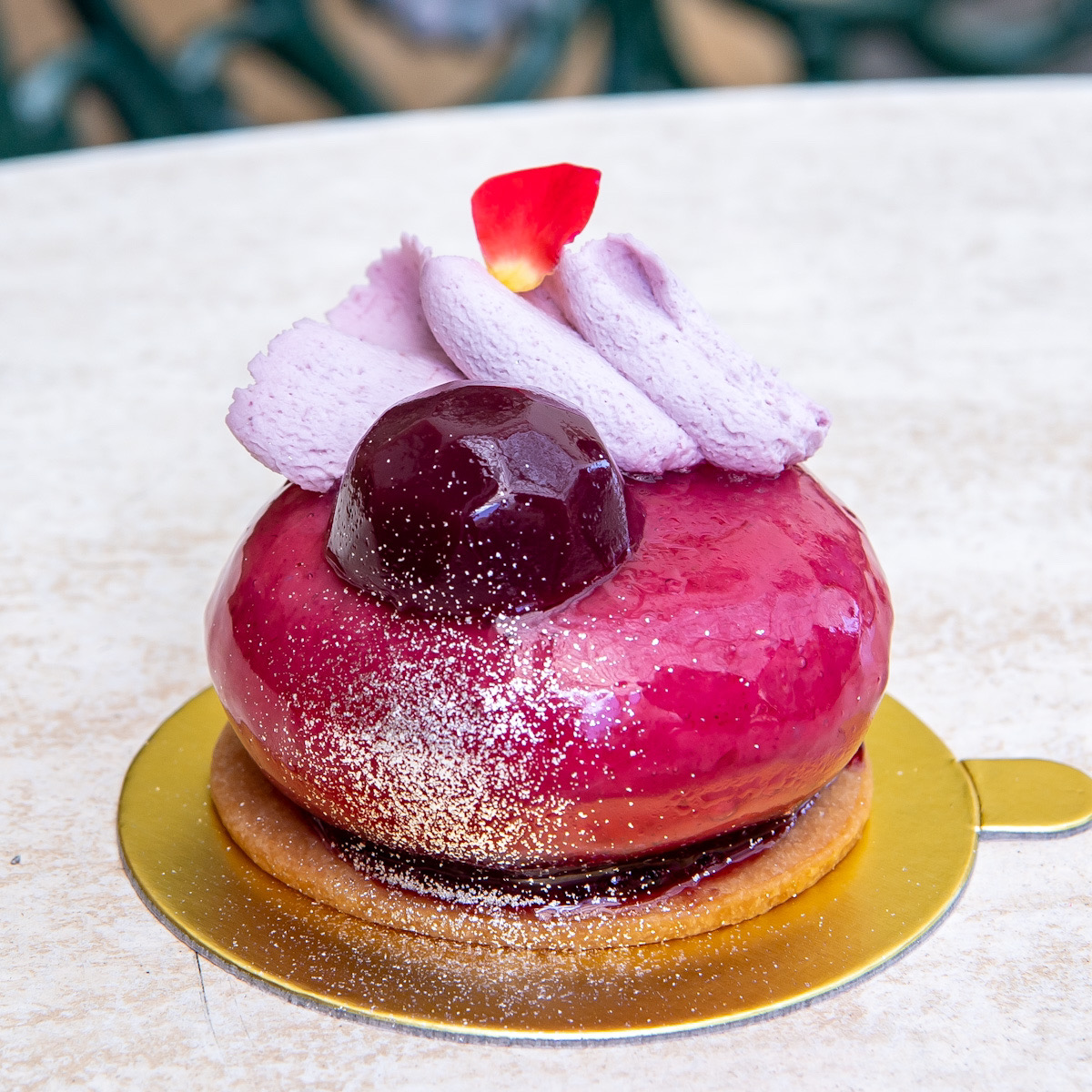 金粉が散りばめられている優雅なデザインのスウィーツ。