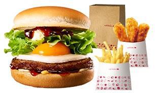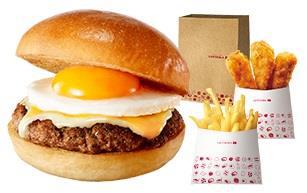 「半熟月見絶品チーズバーガー」と「フレンチフライポテト S」「チキンからあげっと(3本入り)」のテイクアウト限定パックです。