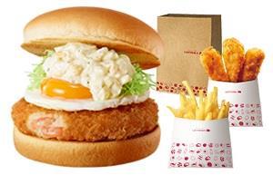 内容:半熟月見エビバーガー、フレンチフライポテト S、チキンからあげっと(3本入り)