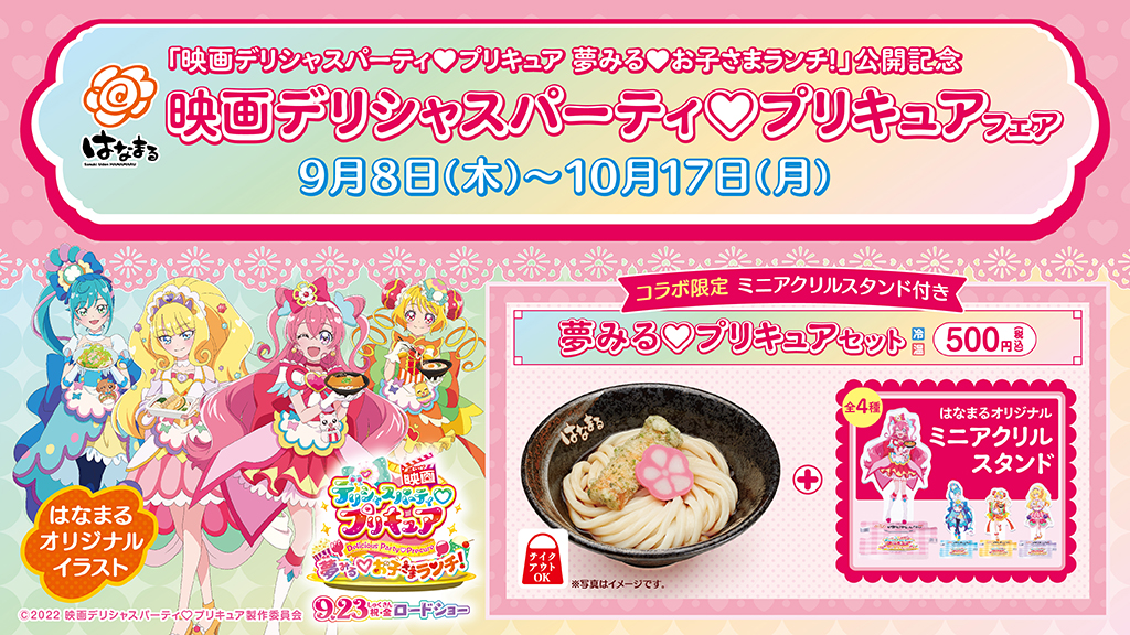 讃岐うどんチェーン「はなまるうどん」などで、『映画デリシャスパーティ♡プリキュア 夢みる♡お子さまランチ!』公開記念コラボとして、「映画デリシャスパーティ♡プリキュアフェア」を開催!