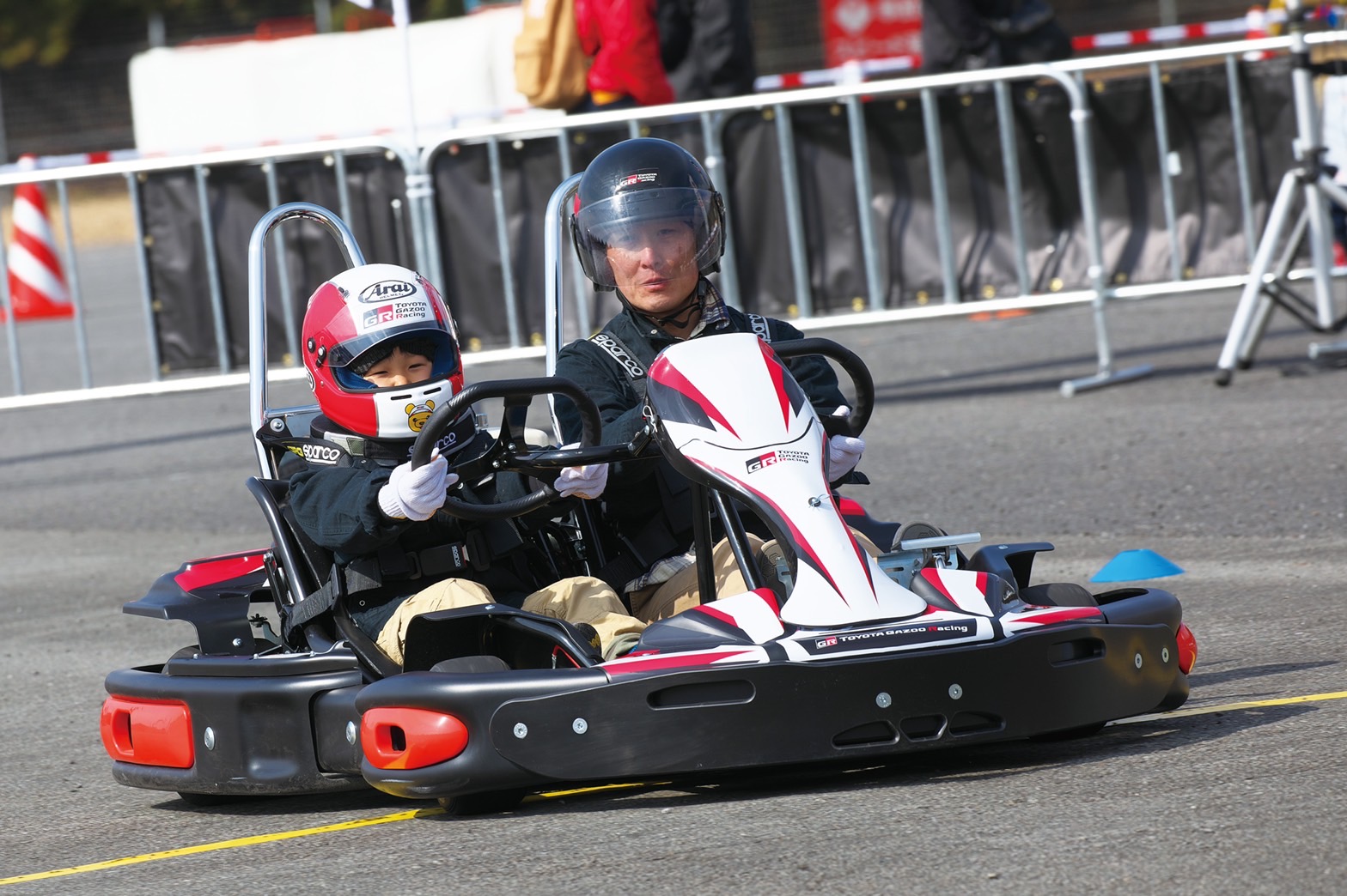 選手の皆さんが運転する2人乗りカートに同乗し、「ドライビング・スクール」のスペシャルコース(所要時間約2分間)を走行します。