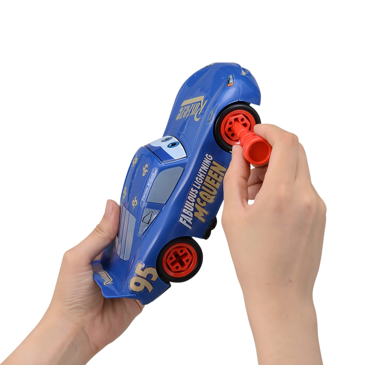 ネジとドライバーを使って、ファビュラスタイプの「ライトニング・マックィーン」を組み立てて遊べます☆
