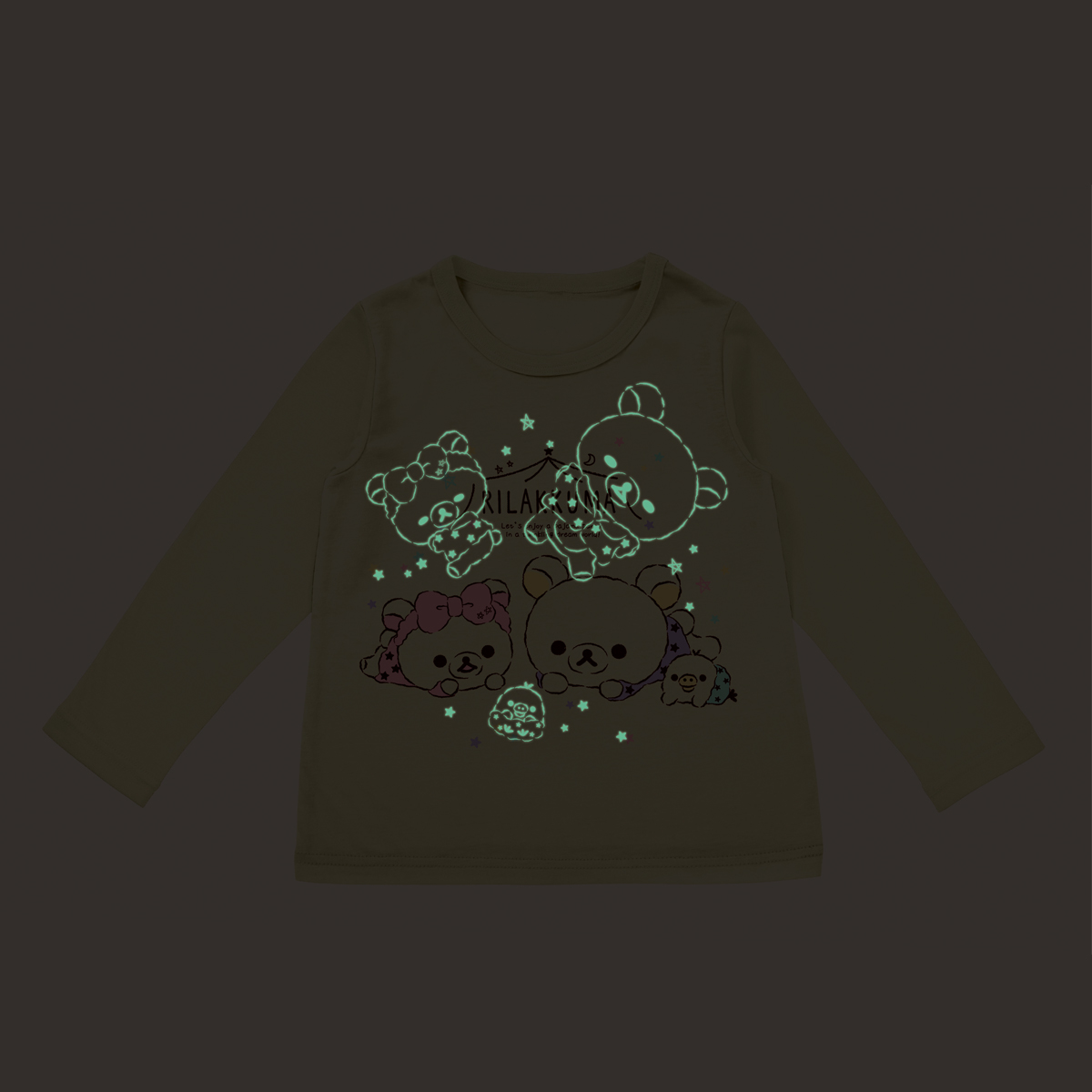 「リラックマ」たちのパジャマパーティーの様子を描いた、かわいらしい光るパジャマ。