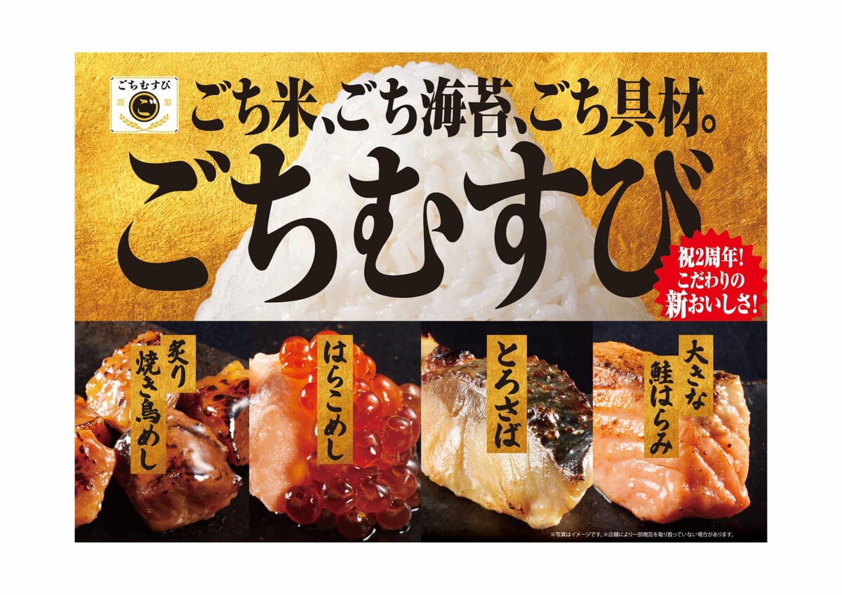 「ごちむすび」2周年のテーマは「ごち米、ごち海苔、ごち具材」となっており、“ごちそう”になるおむすびとして、大きく3つのポイントにこだわっています。