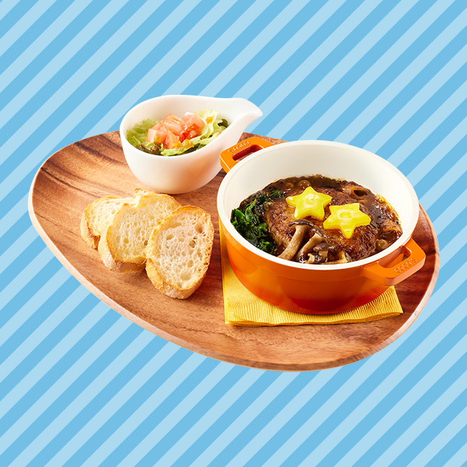 「アマデウス」の技“ダークサイド”をココス新定番のココットハンバーグで表現した一品。