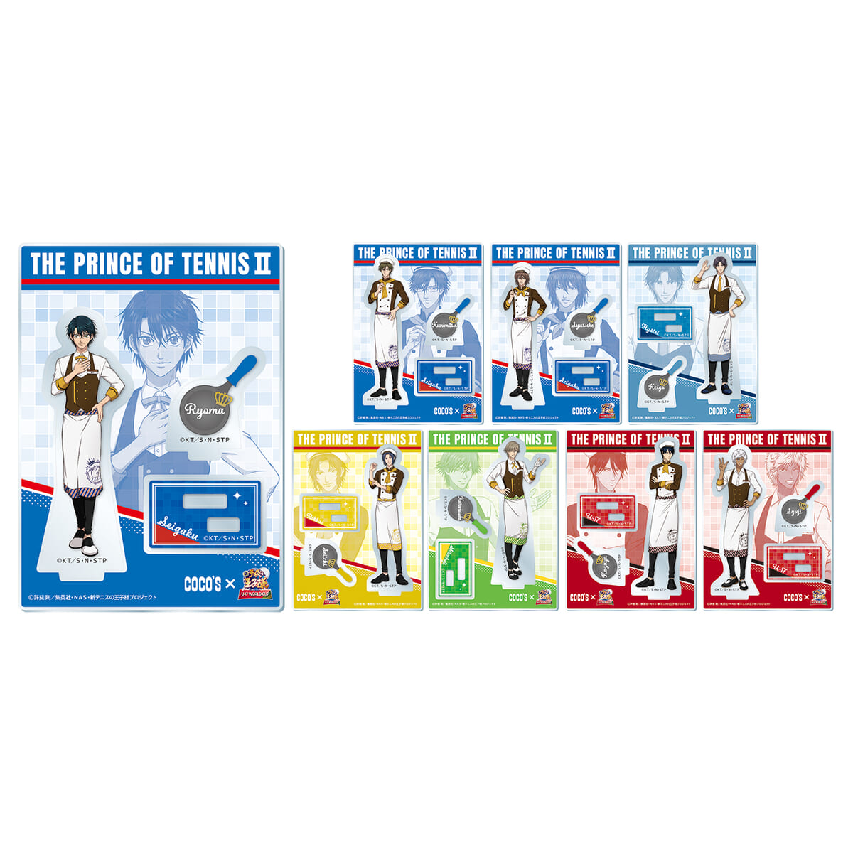 ココスオリジナルクリアファイル第2弾では、「不二周助」「跡部景吾」「徳川カズヤ」「ミニキャラ(リョーマ&跡部&徳川)」の全4種が登場。