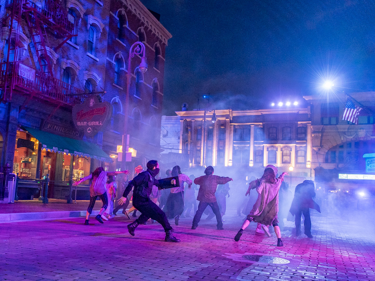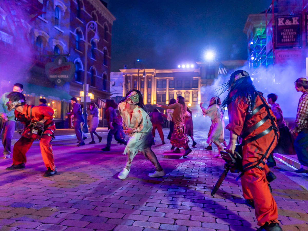 夜のハロウィーンは「ストリート・ゾンビ」や「ゾンビ・デ・ダンス」といった参加型のエンターテイメントも開催される『ハロウィーン・ホラー・ナイト』