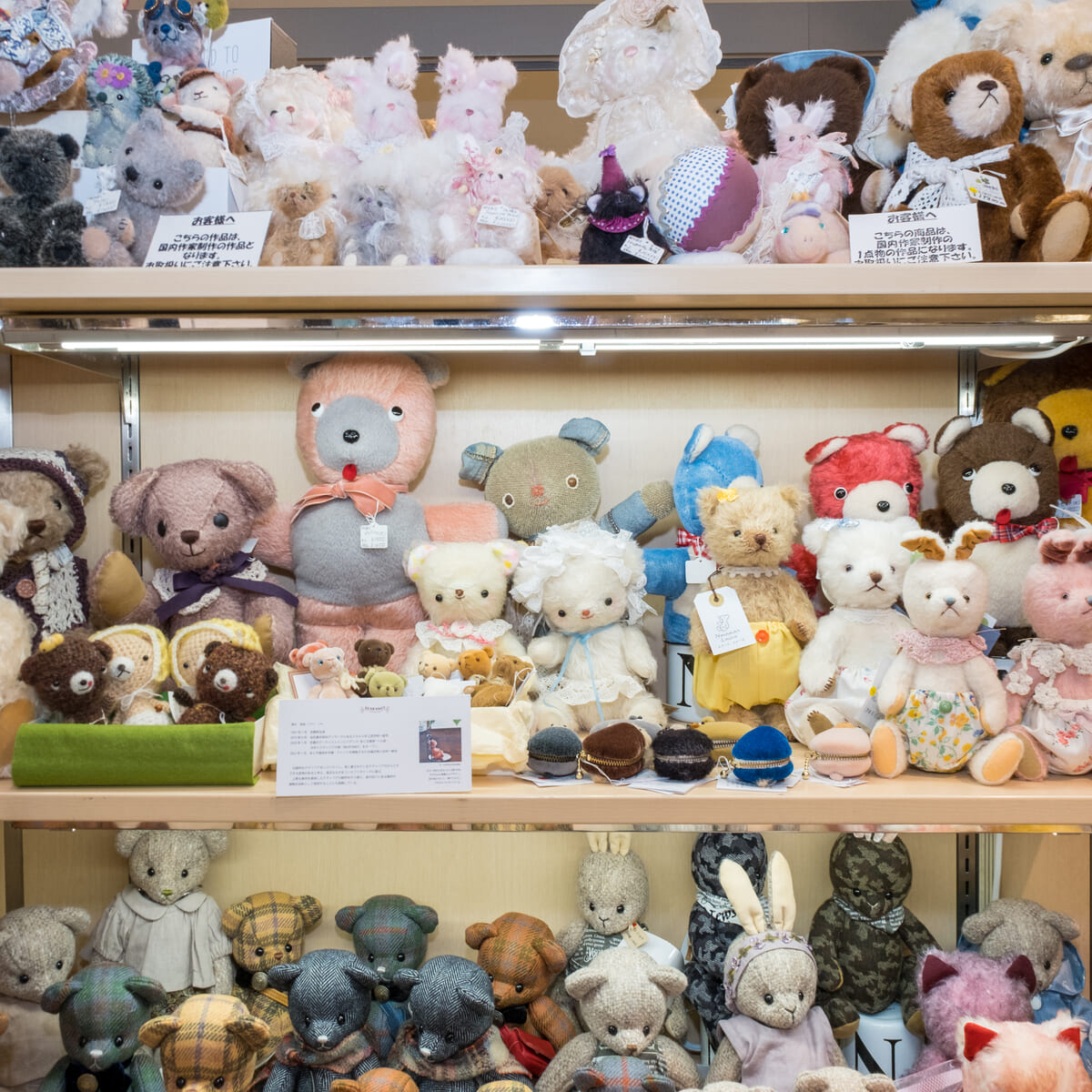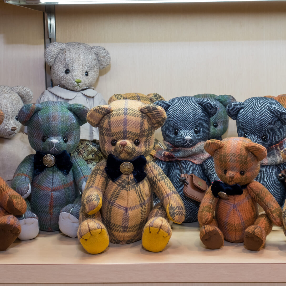 表情や毛並みなど、ひとつひとつ個性あふれるテディベアを堪能できるショップです。