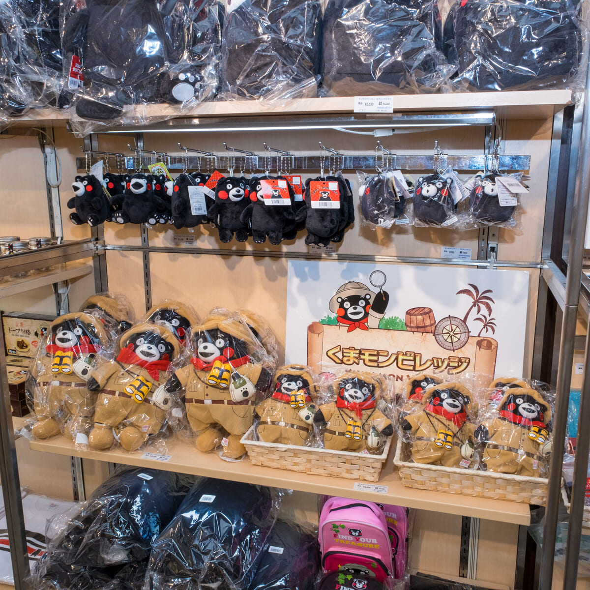 ビレッジだけでしか出合えない、探検隊風の衣装を着たグッズなど様々な「くまモン」グッズがラインナップ!