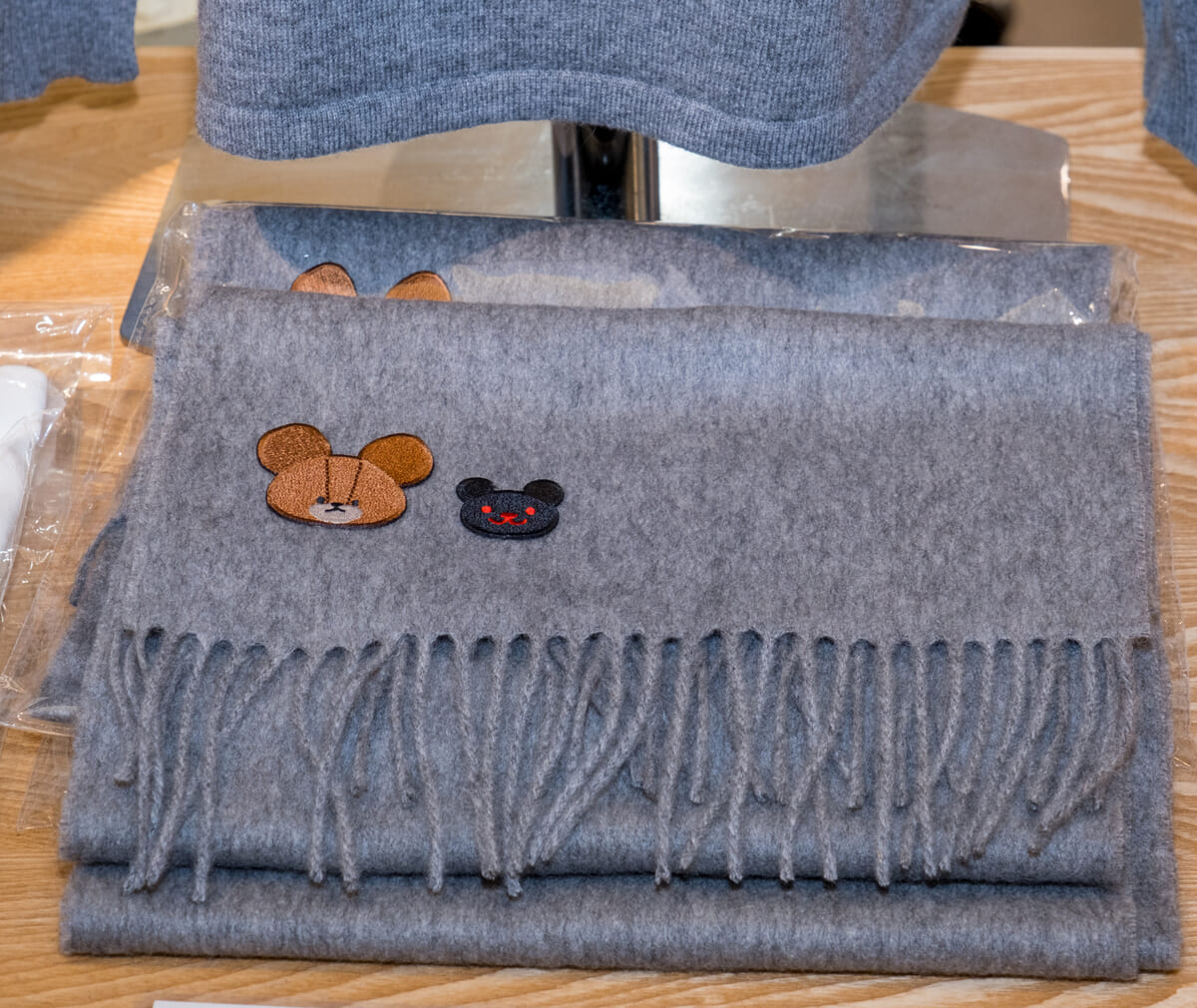 グッズコーナーでは、肌寒い時期にピッタリなカシミヤグッズもラインナップ!
