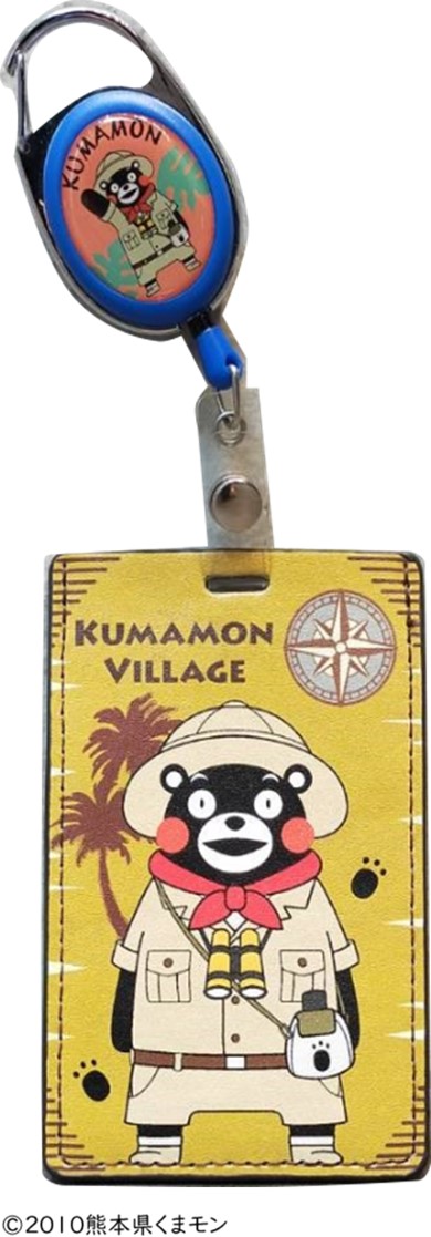 「くまモンビレッジ」のイラストが描かれた、ストラップ付きのリールパスケース。