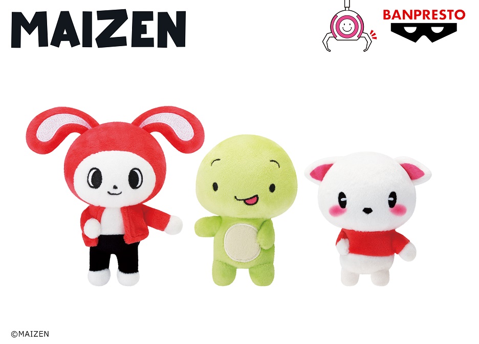 「まいぜんシスターズ ぬいぐるみ~マイッキーダンス~」は「ぜんいち」「マイッキー」「MAIZENキャリーちゃん」がダンスを踊るポーズのぬいぐるみ。