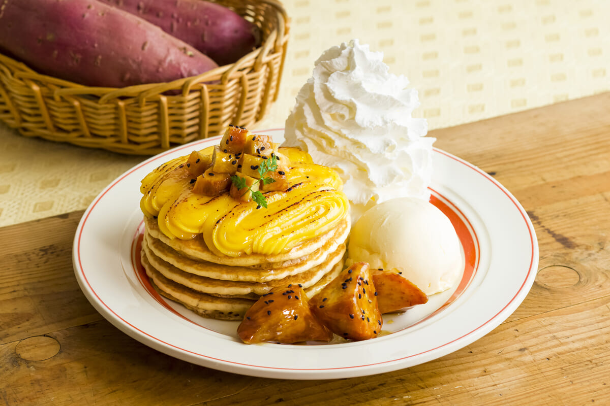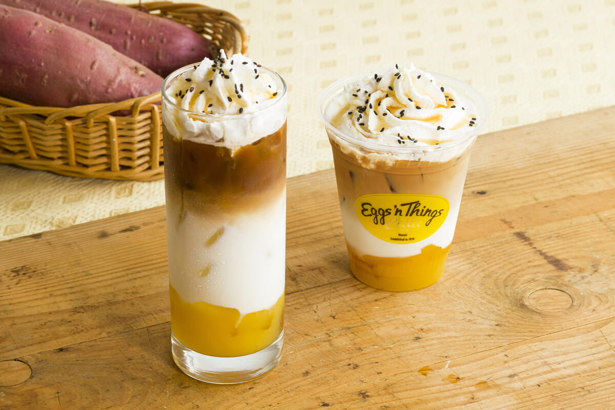 Eggs ’n Thingsの期間限定メニューとして「大学いも&スイートポテトパンケーキ」と「スイートポテトラテ」が登場!