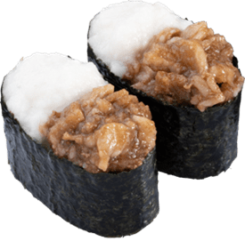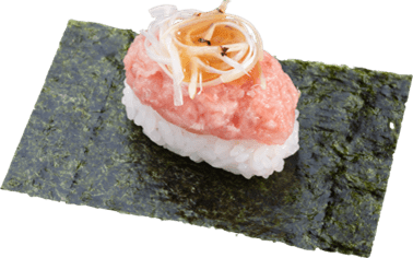 ねぎとろの上に塩とペッパーで味付けした白髪ねぎをのせたお寿司。