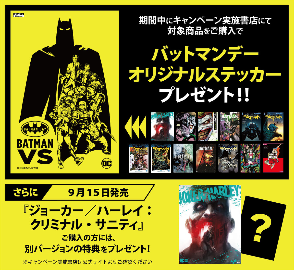 対象コミックスを購入した方に、バットマンデーオリジナルステッカーをプレゼント!