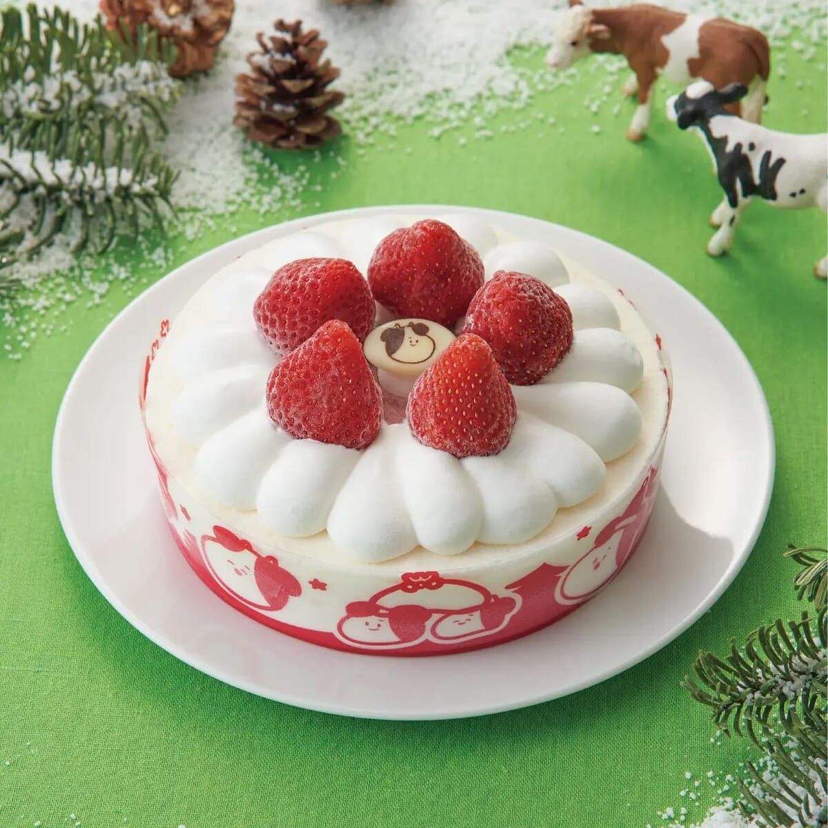 北海道産牛乳を使用したミルクアイスに”たべる牧場”シリーズのキャラクターである「うし」絵柄のチョコプレートと、イチゴのトッピングがキュートです☆
