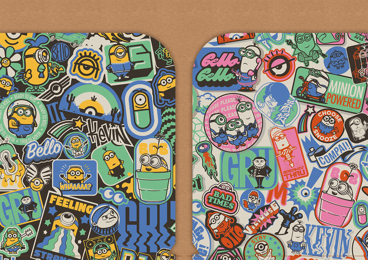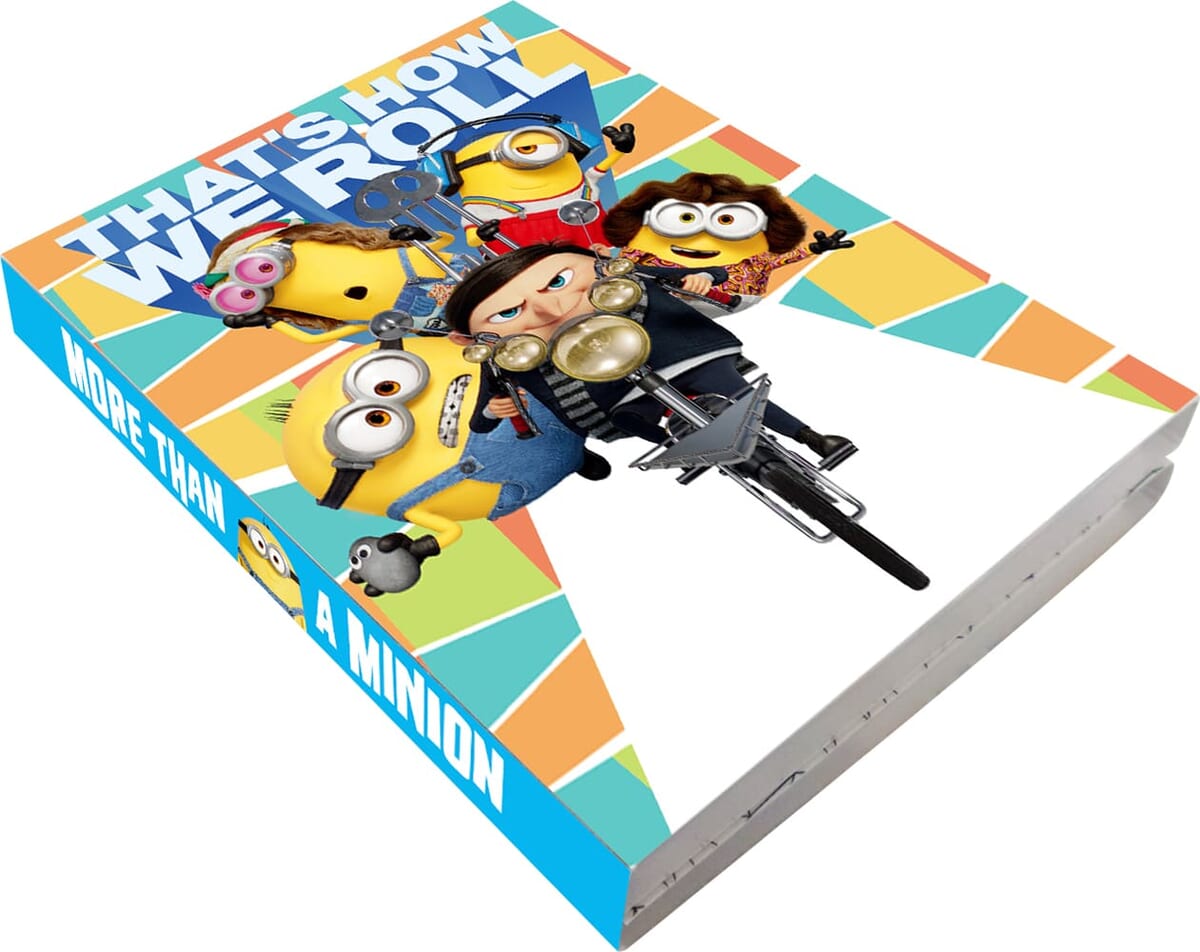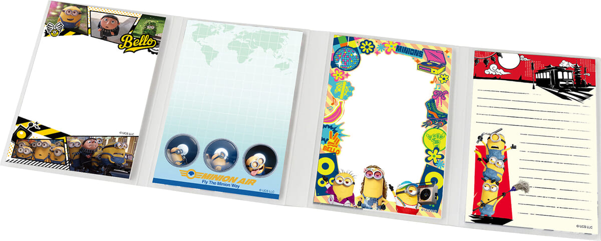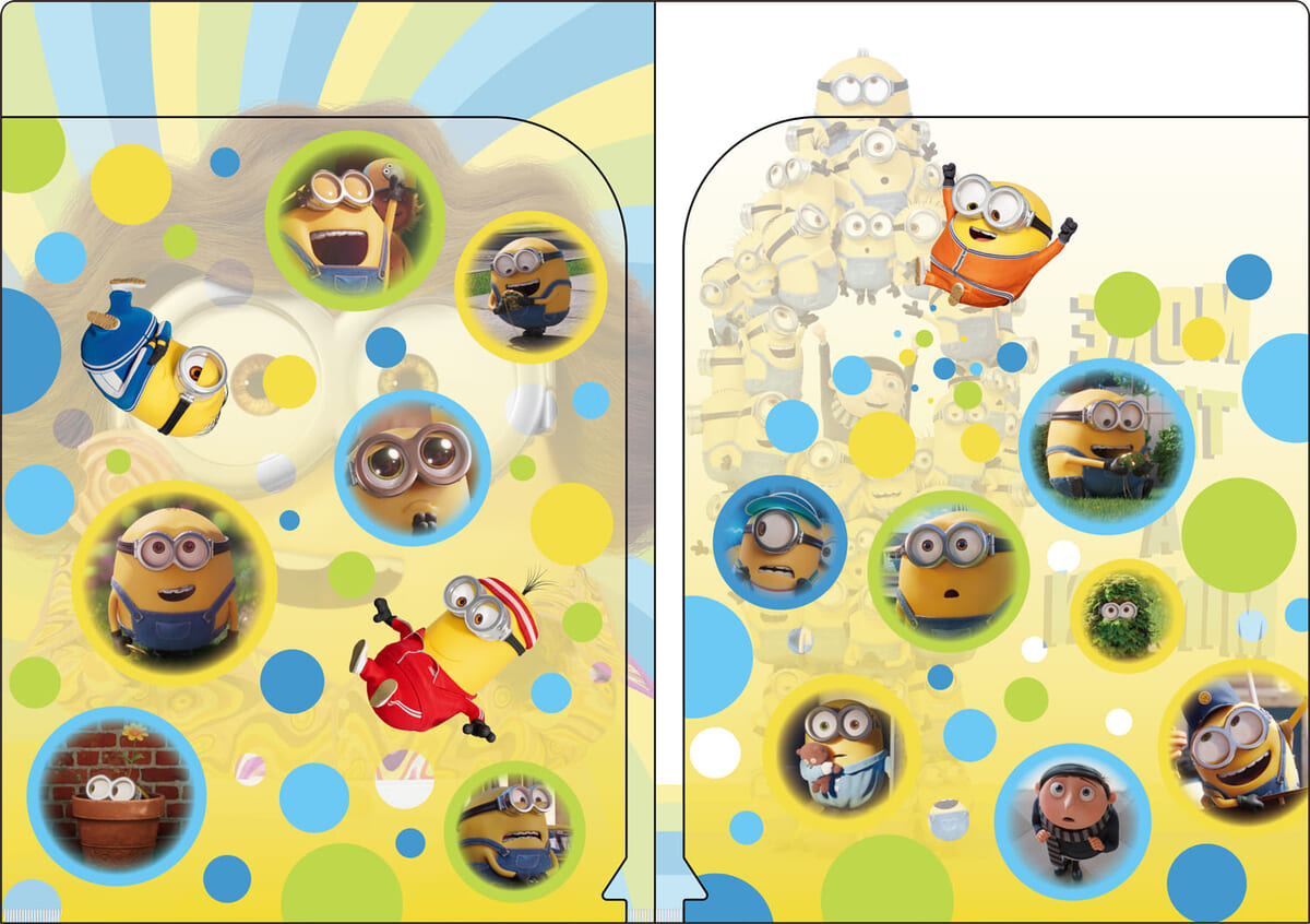 さらにクラフトファイルを開くと、ポケット部分に描かれた色鮮やかなミニオンたちのステッカー風アートが広がります。