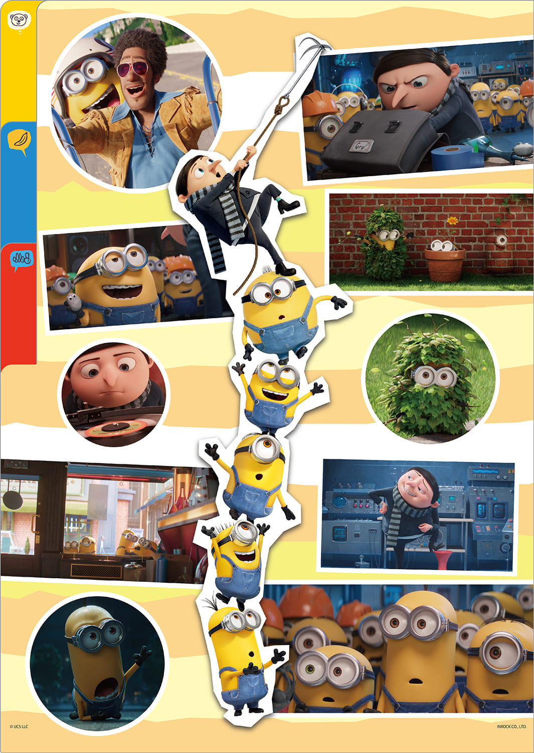 カバー部分のイラストには「グルー」とミニオンたちが悪だくみをしているシーンをピックアップ。