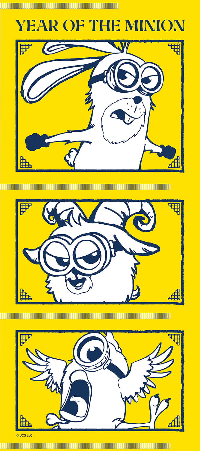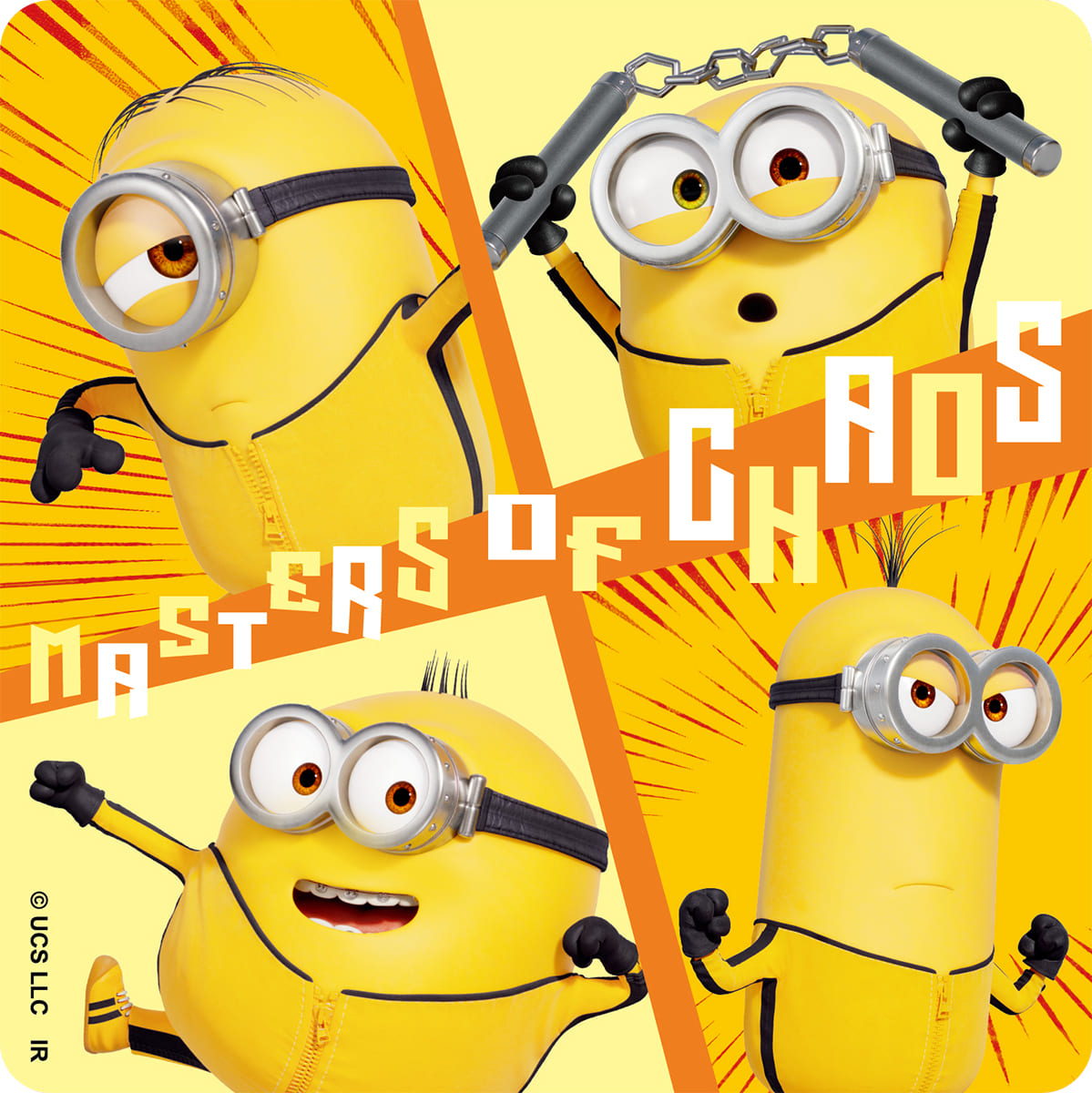 見る角度によって絵柄が変わる、カンフースーツをまとったミニオンたちの「チェンジングステッカー」