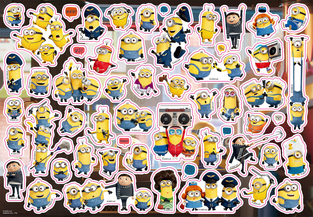 映画『ミニオンズ フィーバー』に登場する姿のキャラクターたちが、たくさんのシールになった「シールあそび」