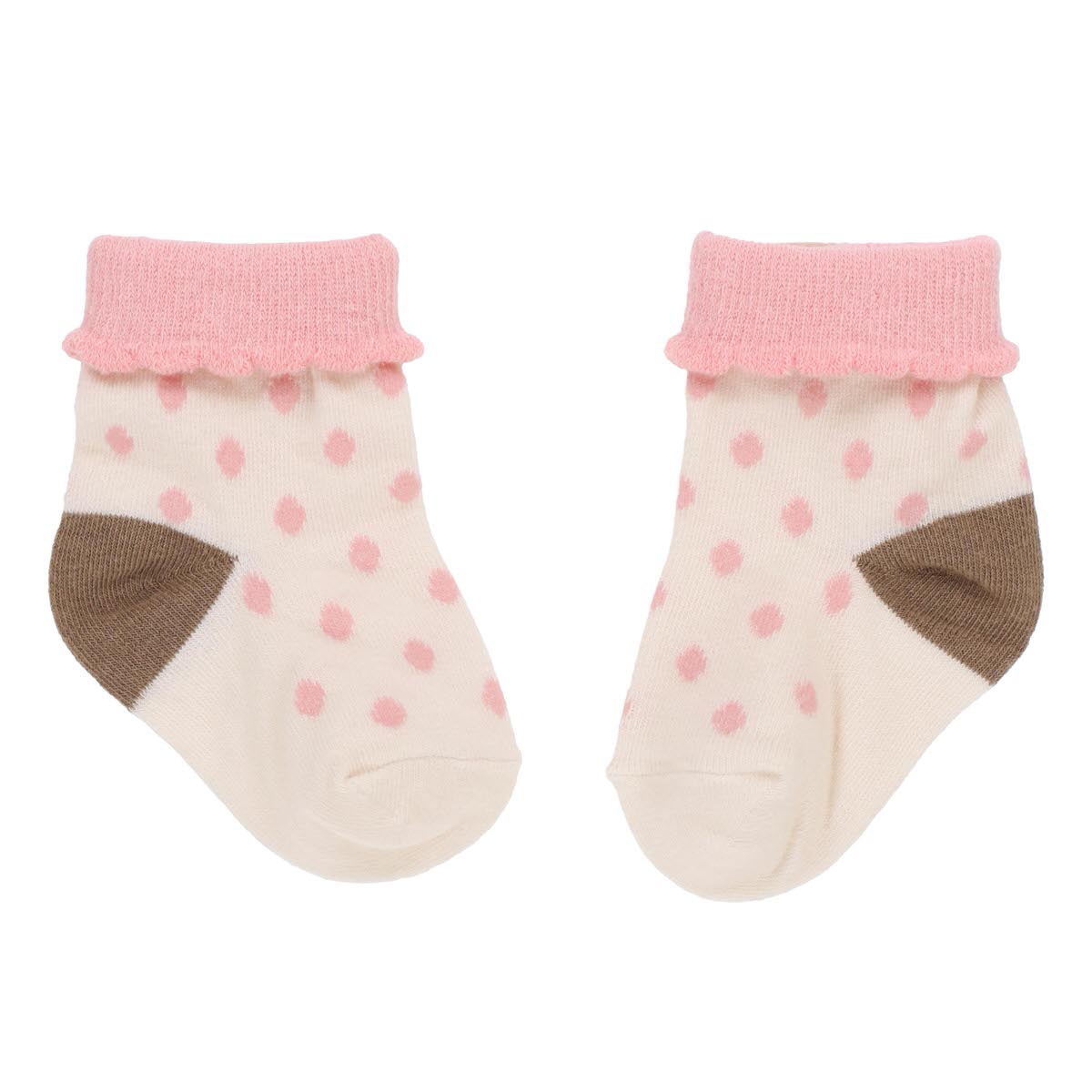 ピンクの折り返し部分やドット柄で、女の子らしさあふれる靴下になっています。