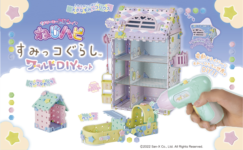 本物そっくりな電動ドライバーで組み立てて遊べる「ドリーミーDIYトイ ねじハピ」と「すみっコぐらし」がコラボした限定セットを発売。