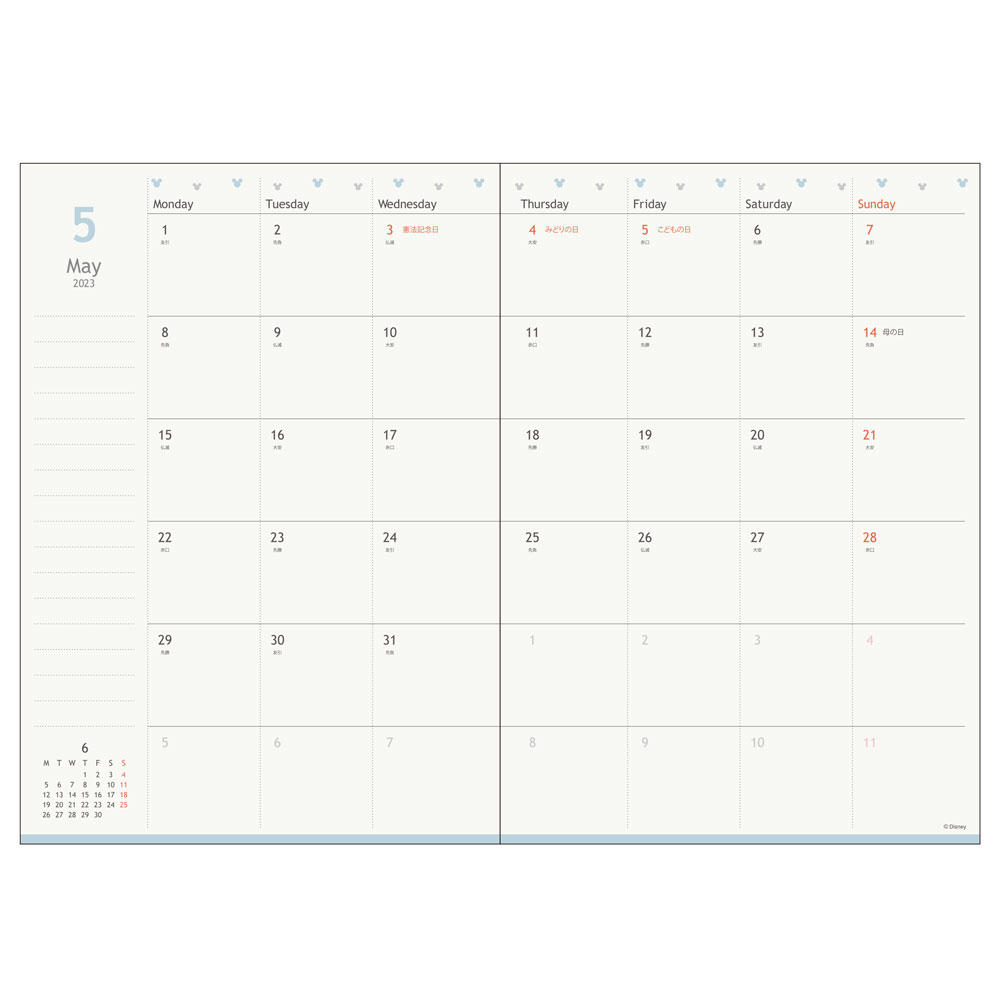 2023年手帳 月間B6「ミッキーマーク ドット」