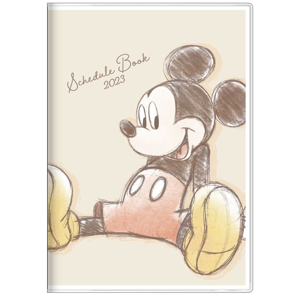 「ミッキーマウス」がスケッチ風のタッチで描かれた2023年度手帳。
