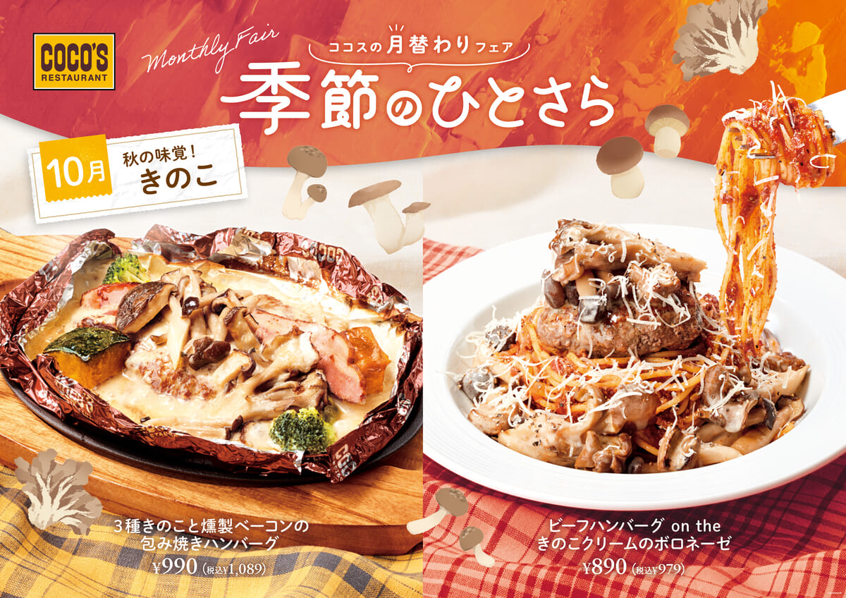 ファミリーレストラン「ココス」にて、月替わりフェア「季節のひとさら~10月~」を開催!