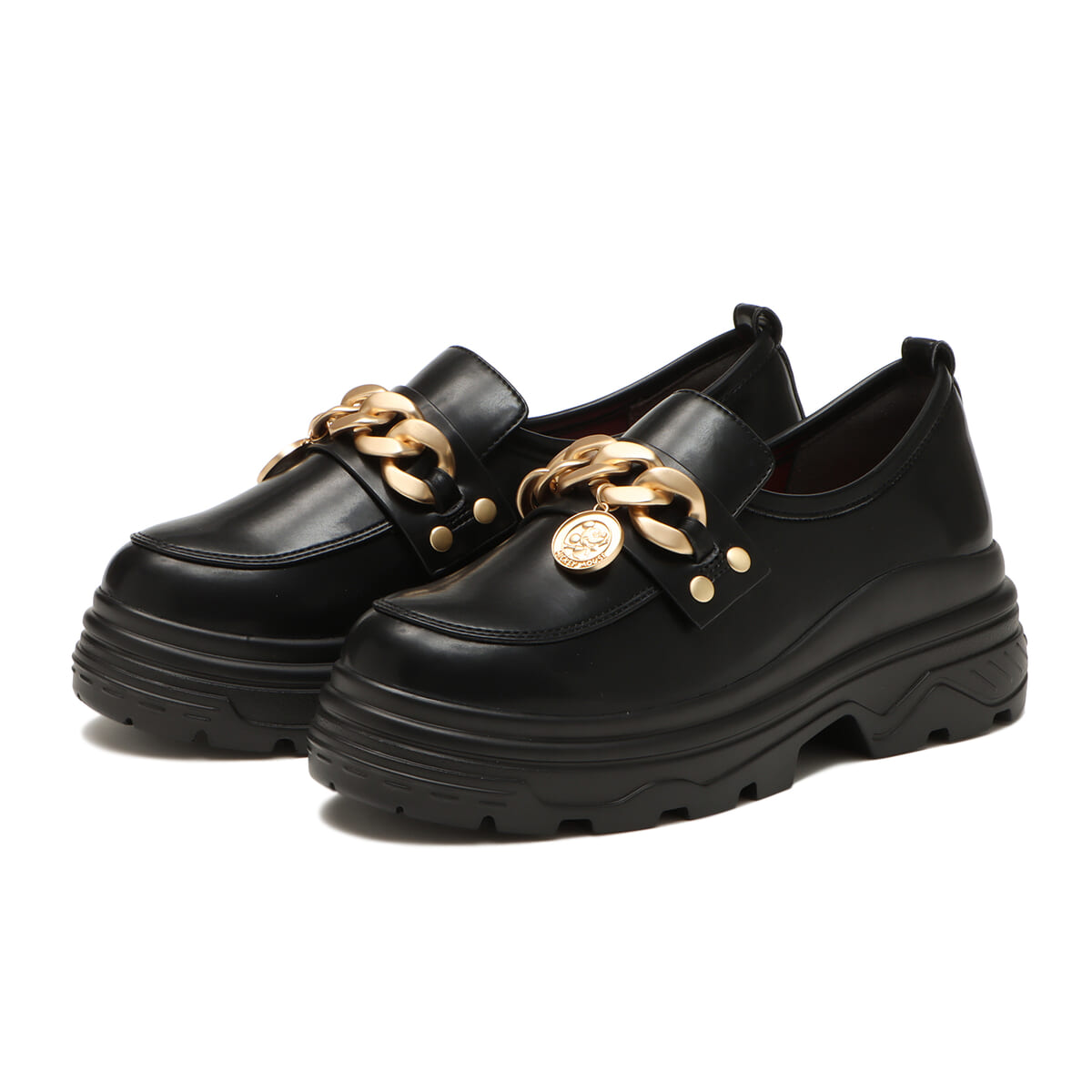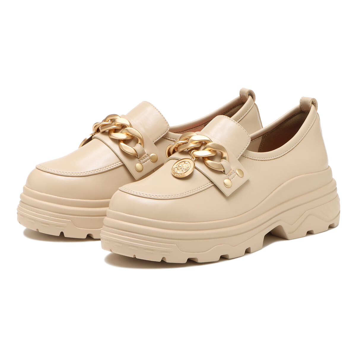 その日のコーディネートに合わせて、チェーンベルトとシンプルなベルトの2種類を付け替えられるボリュームシューズ。
