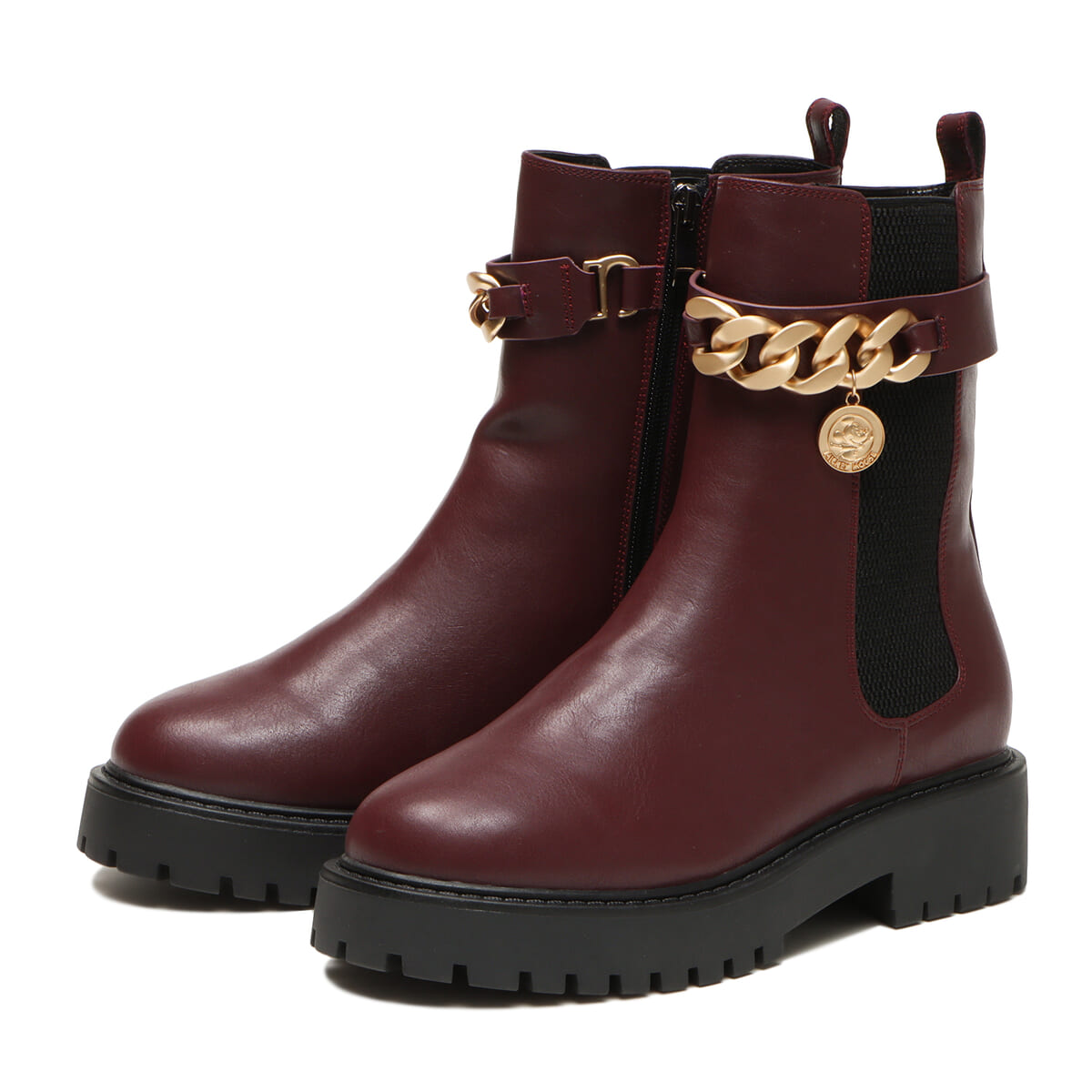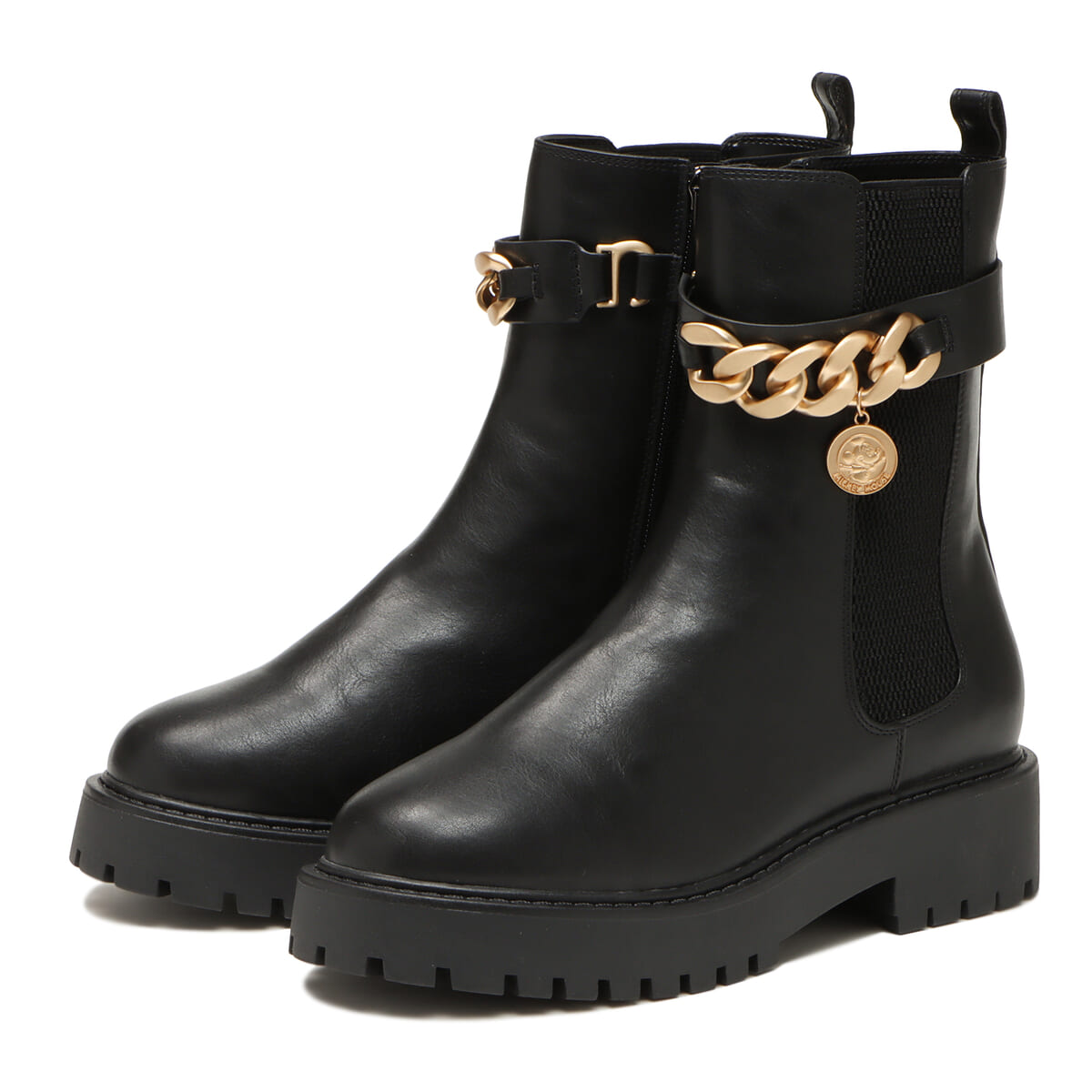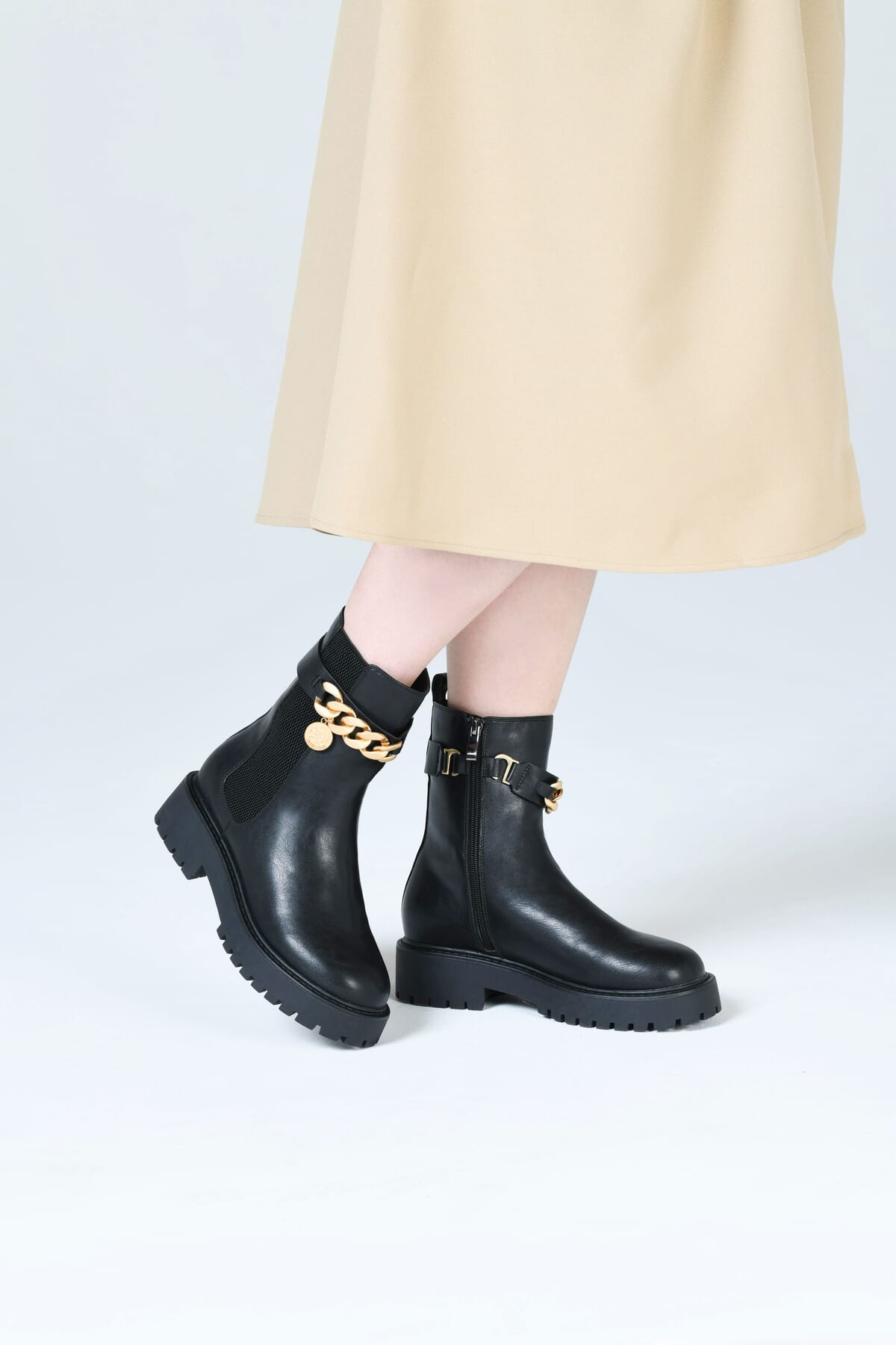 ローファー同様メタルチャームがついた、ベルトの取り外しができる厚底ブーツ。