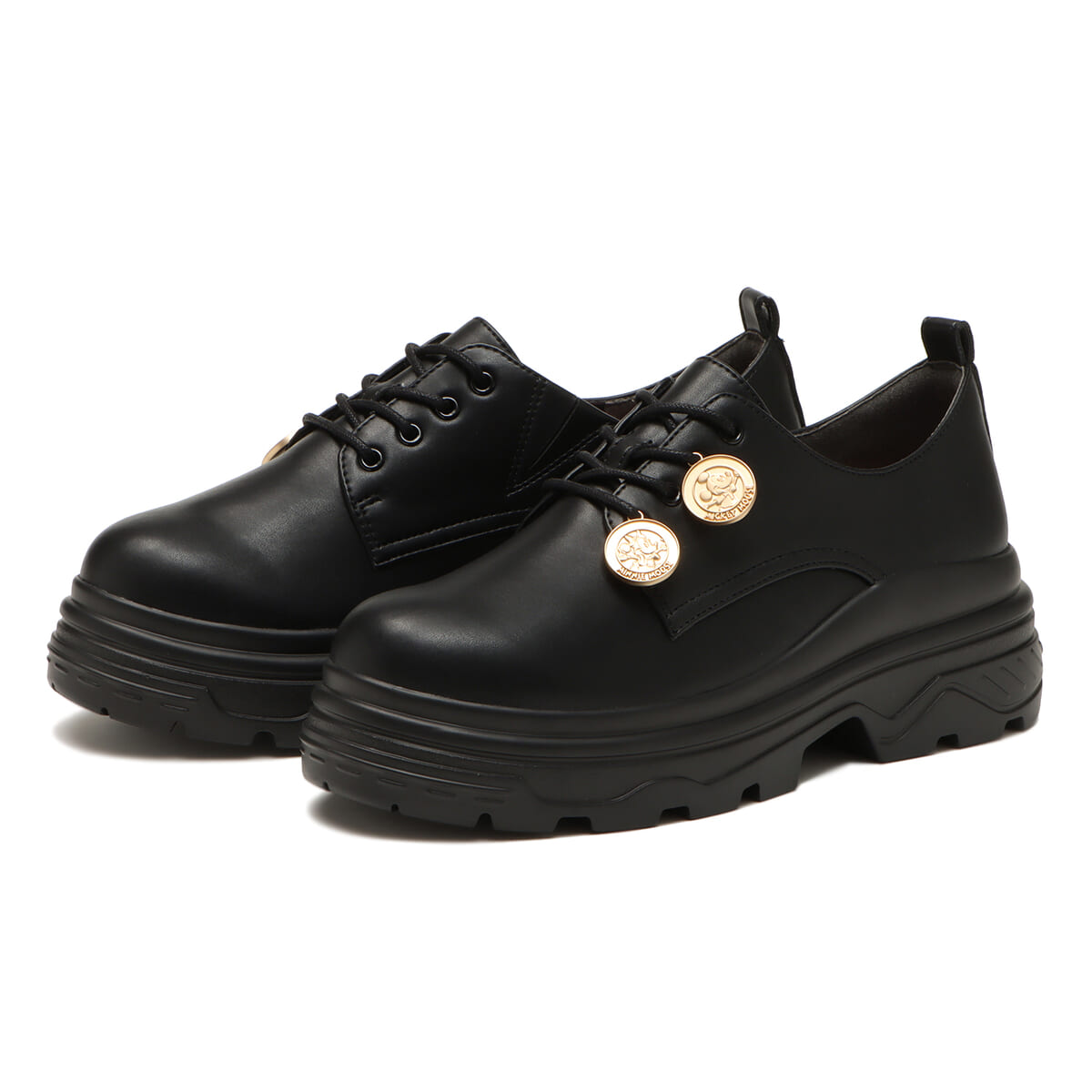 ベーシックな形のシューズに、ゴールドのメタルチャームがアクセントになっています。
